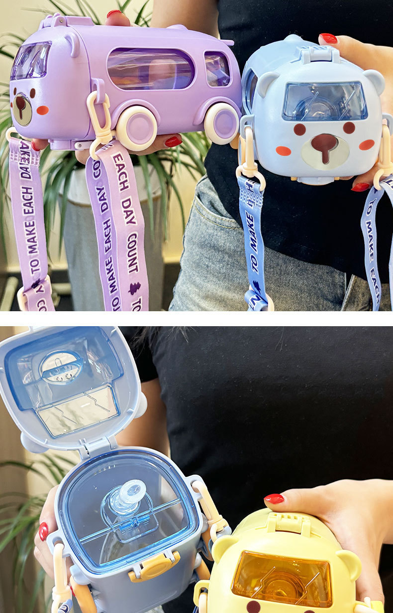 children's good-looking cartoon baby bus car cup cartoon bounce straw plastic cup kindergarten water pot 中文版
