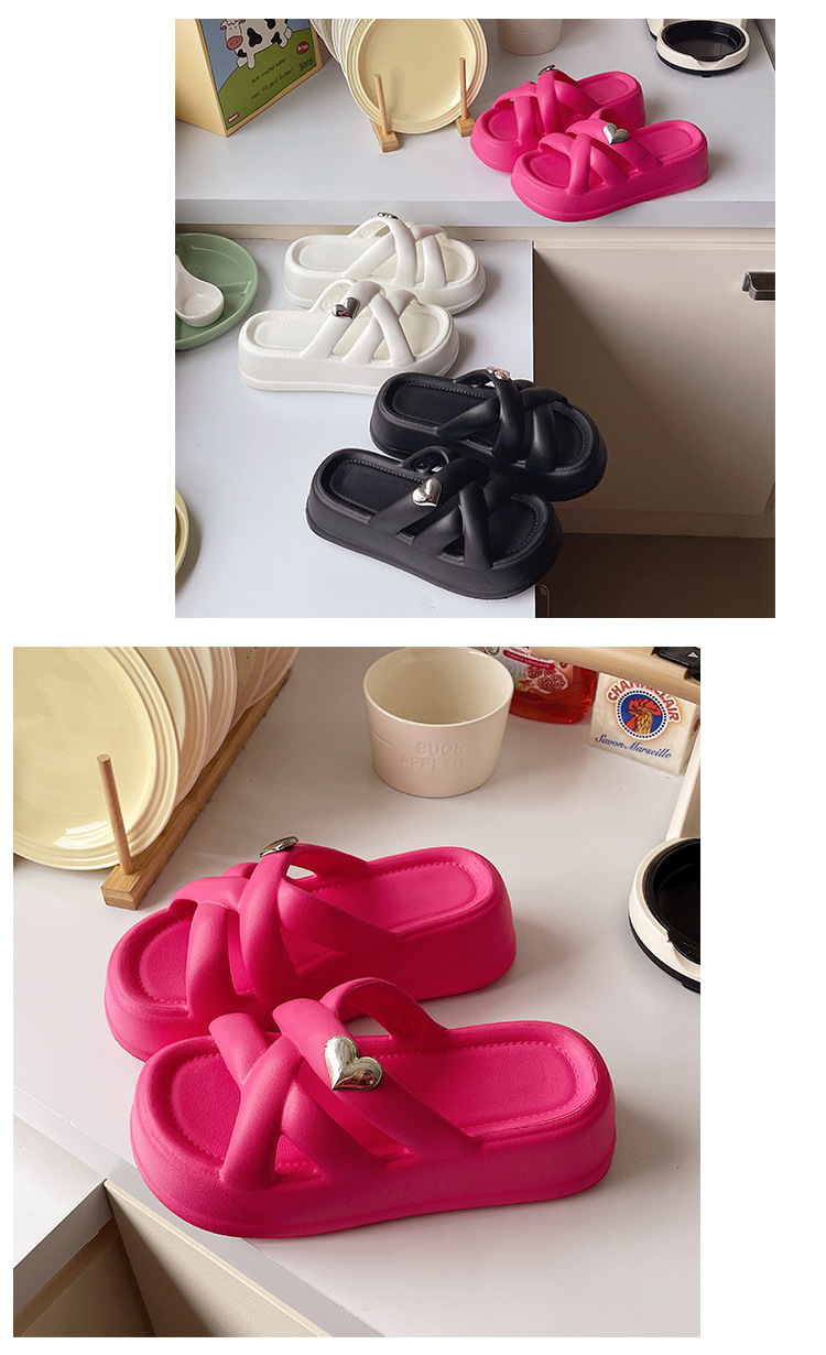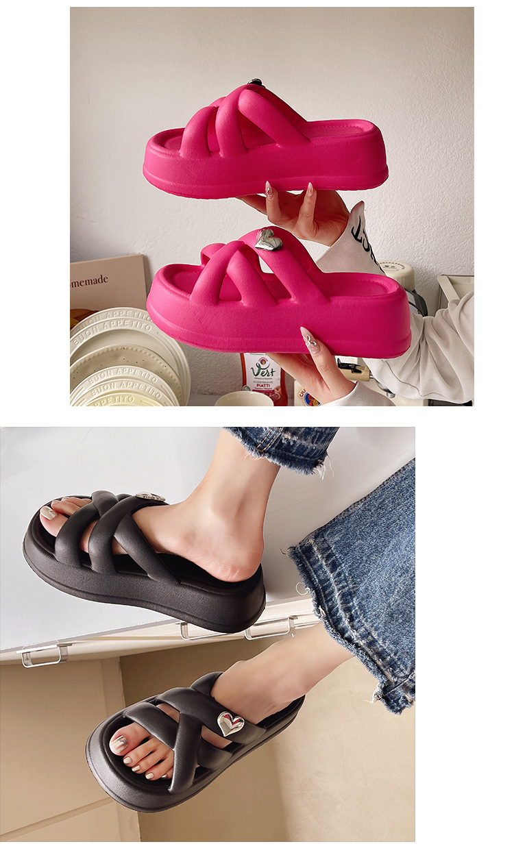 eva platform slippers women's summer outdoor all-matching 2024 new korean style love cross belt beach slippers