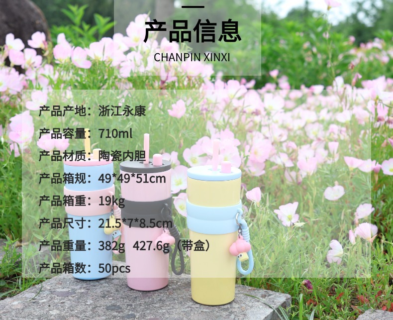 cross-border new arrival 316 stainless steel vacuum cup rope handle portable cup good-looking portable ceramics large ice cup 中文版