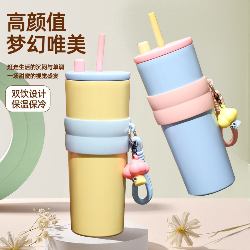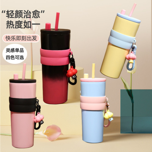 factory direct sales good-looking colorful cup with straw large capacity in-car thermos portable convenient car large ice cup 中文版