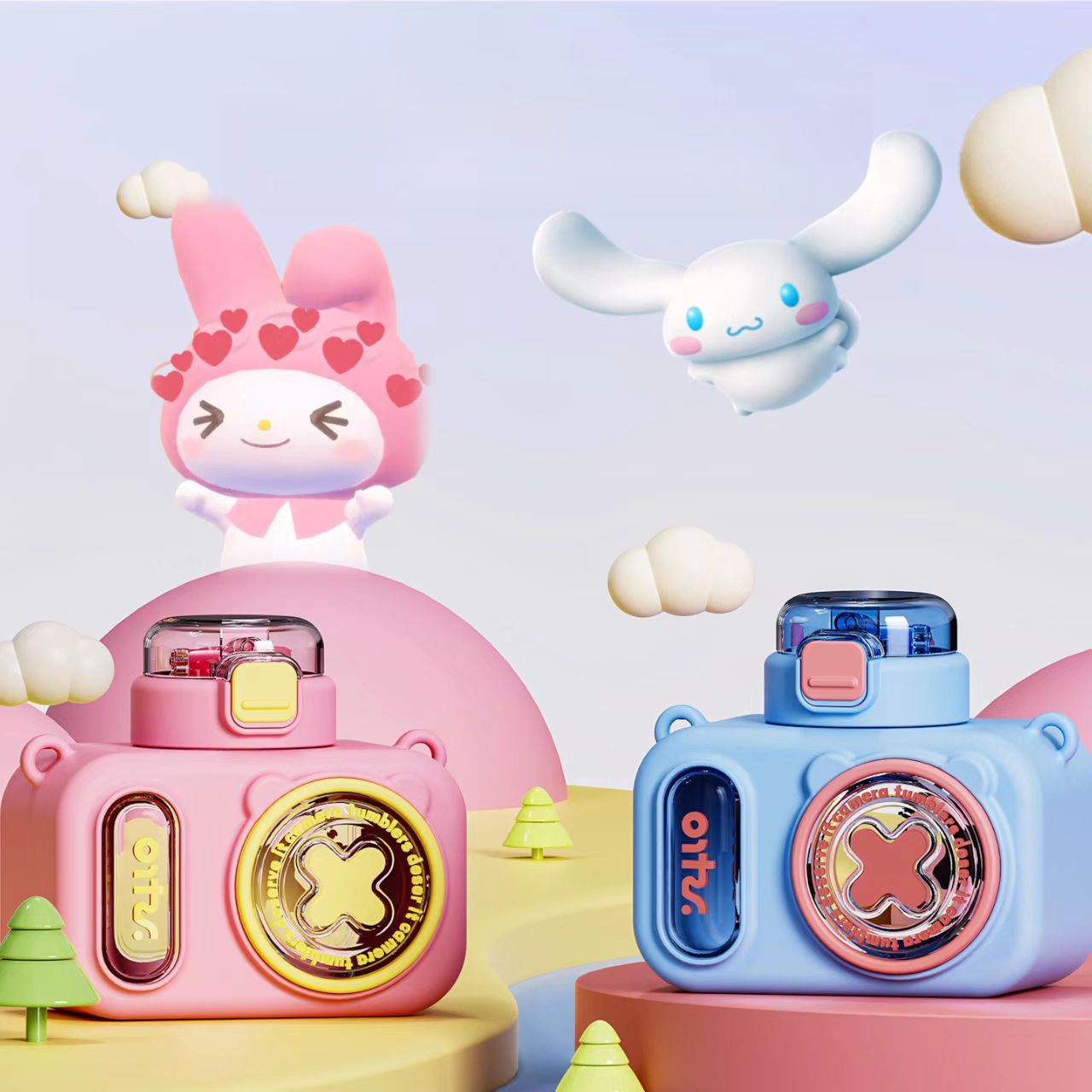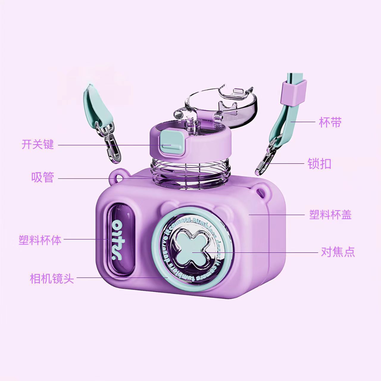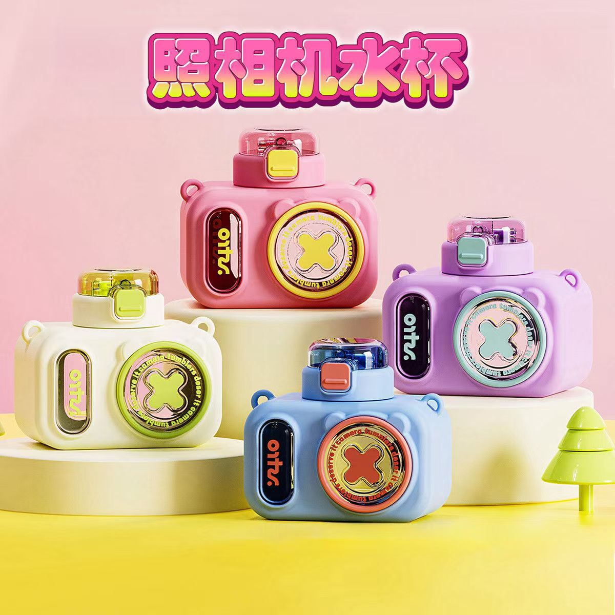 summer children's camera water cup good-looking cute portable crossbody kettle plastic drop-resistant straw water cup