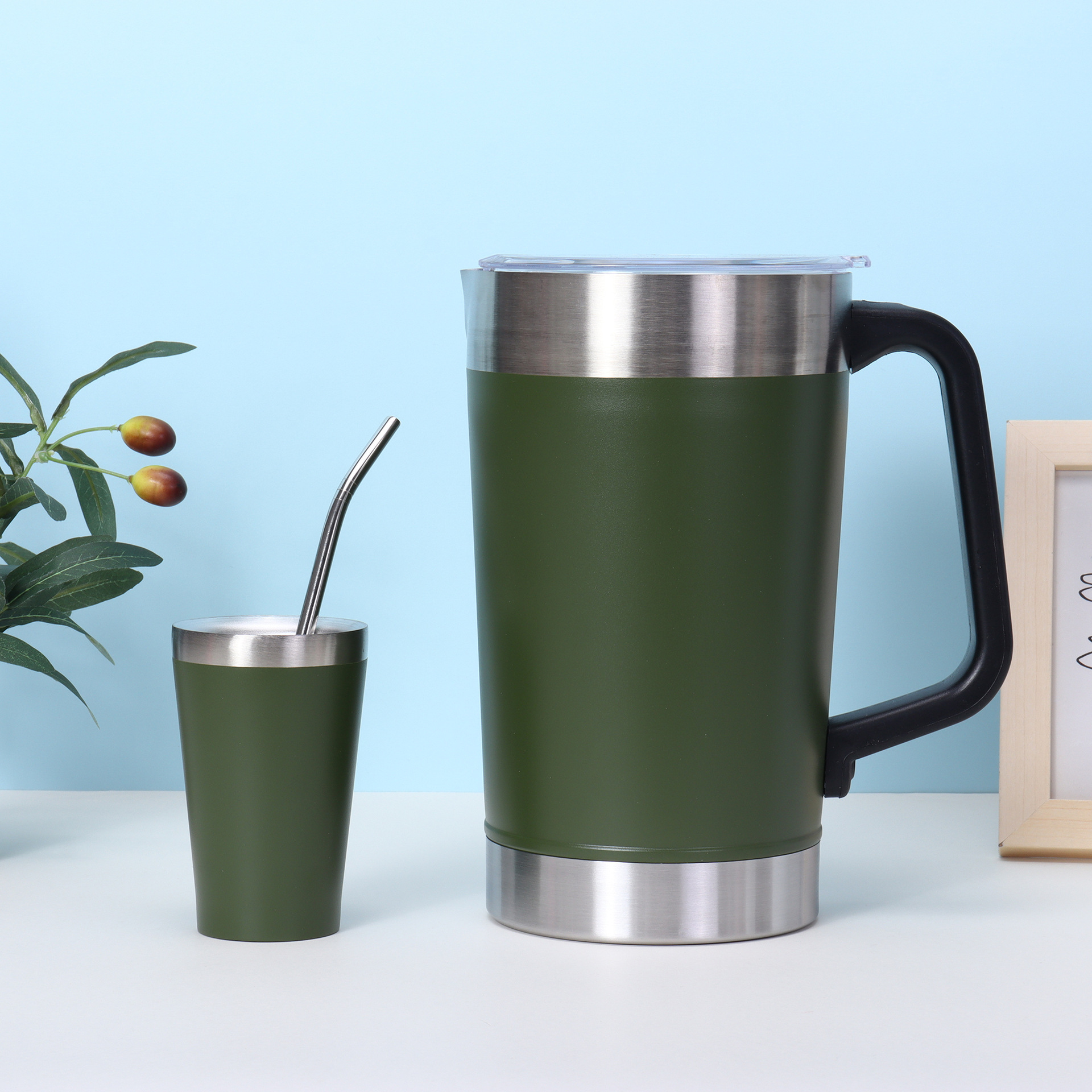 1212#304 stainless steel vacuum cup portable handheld cup large capacity ice bucket two-piece car beer steins wholesale