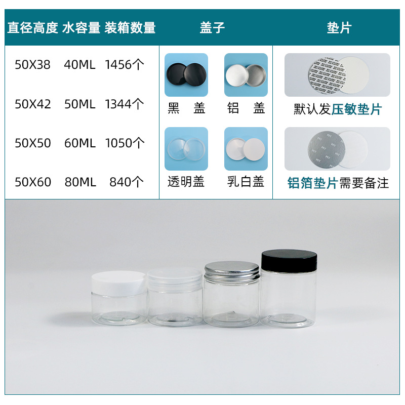 | diameter 50 height 50mm(60ml, 1,050 in a box); transparency cover | ¥0.5 | 85378 pcs available |