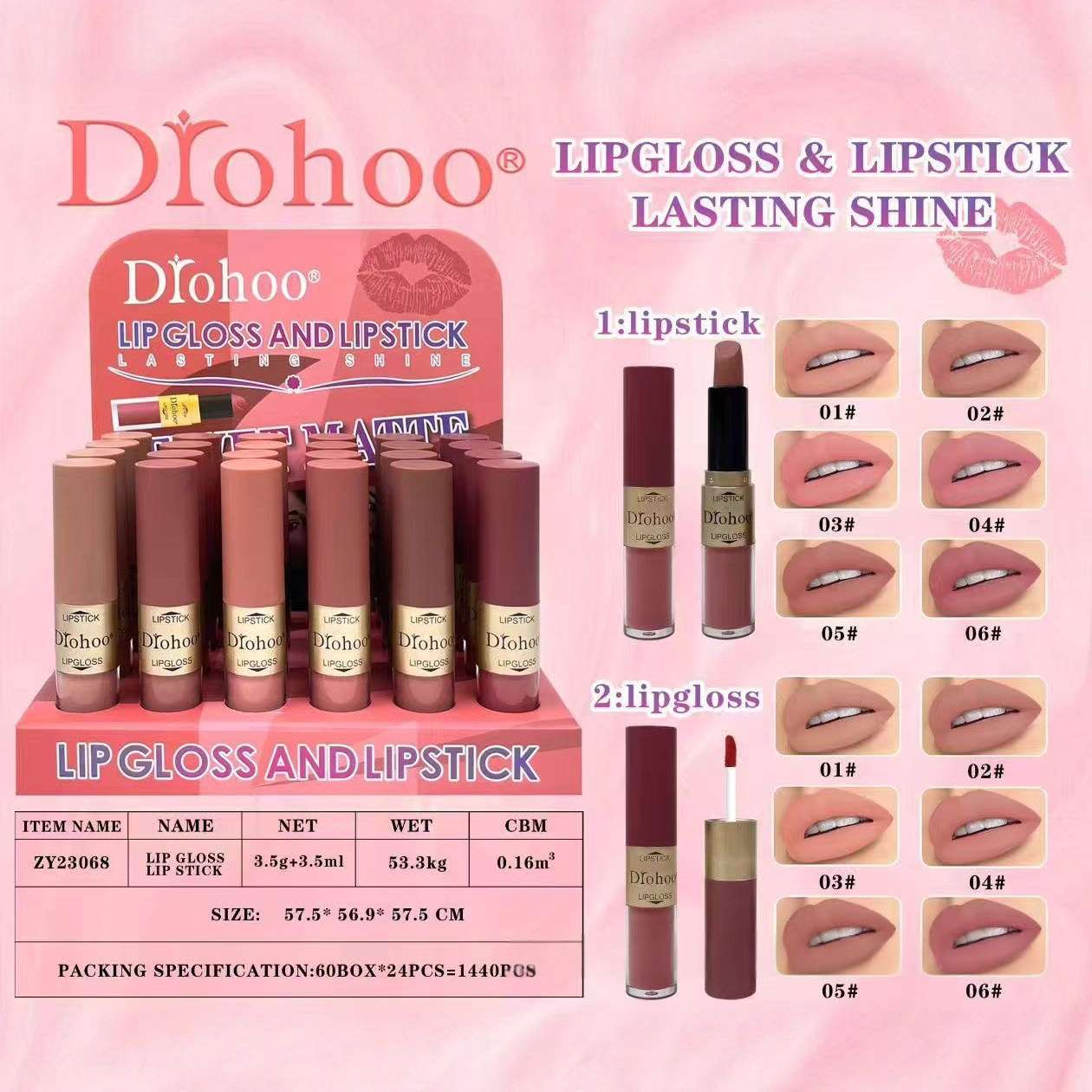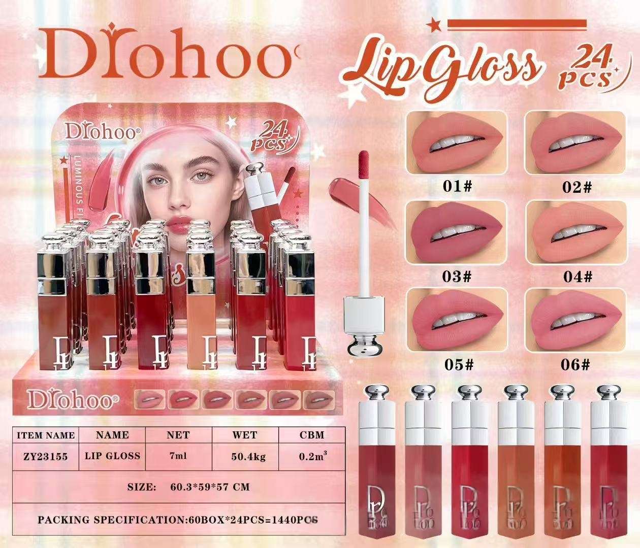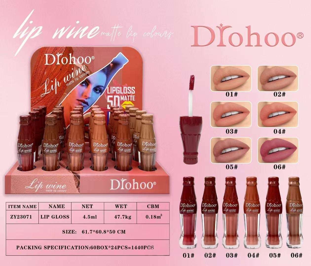 cross-border new arrival drohoo matte finish velvet lip gloss waterproof no stain on cup no fading long lasting nourishing lipstick 中文版