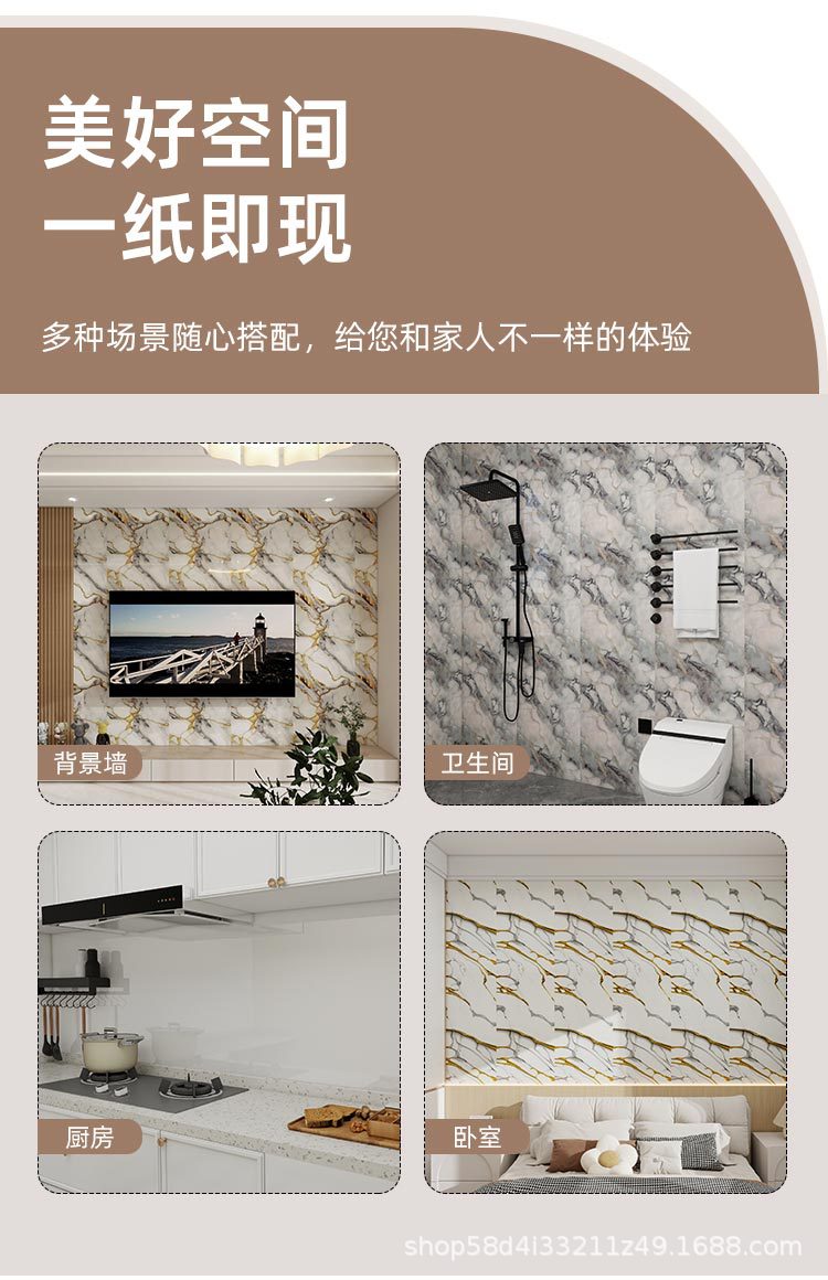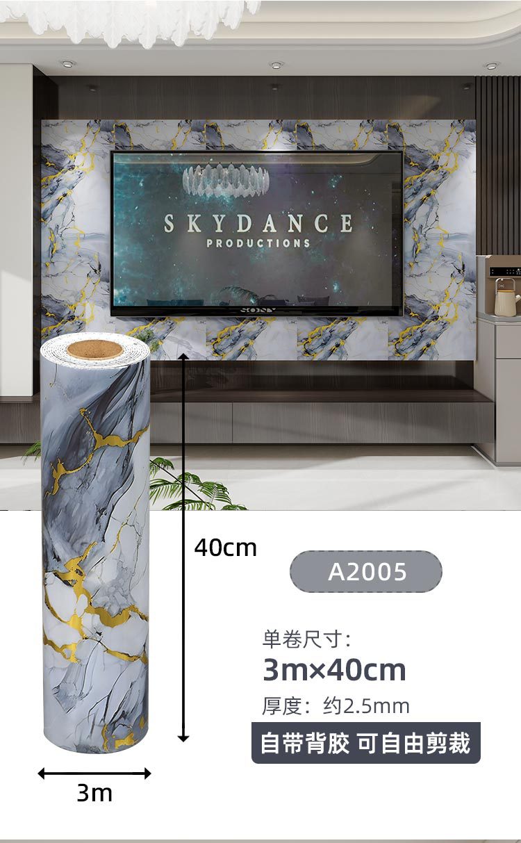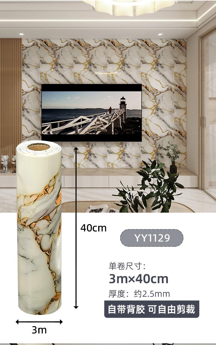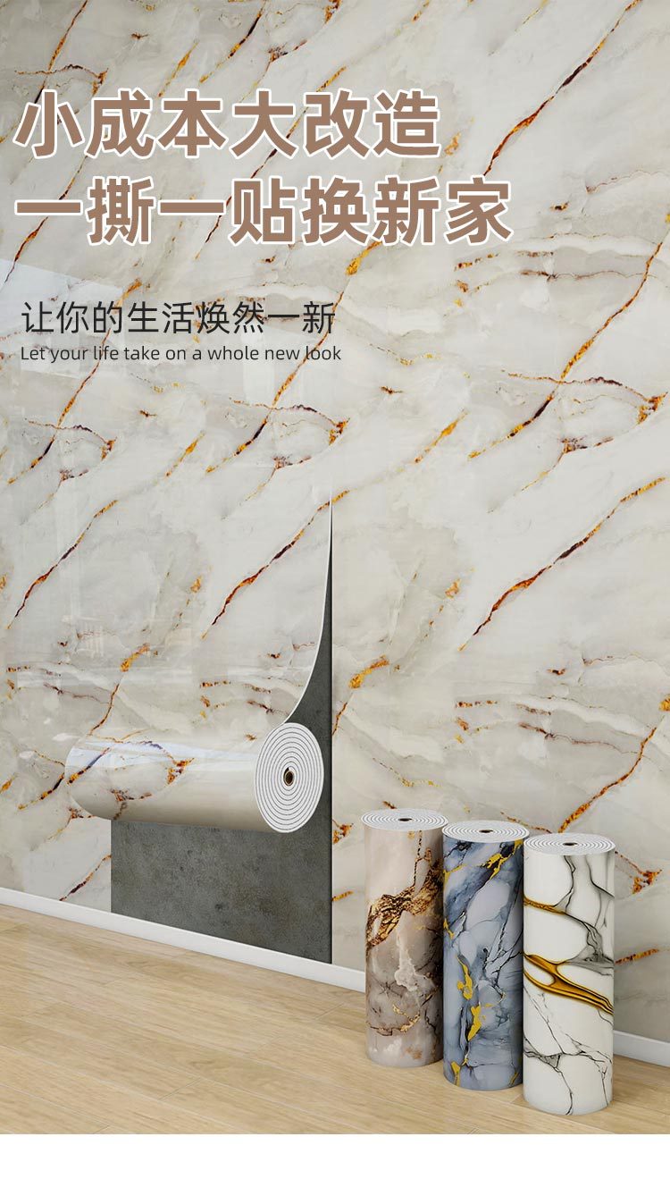 foreign trade imitation tile self-adhesive roll material marble wall sticker wall panel aluminum plastic plate living room bedroom wall decoration wallpaper 中文版