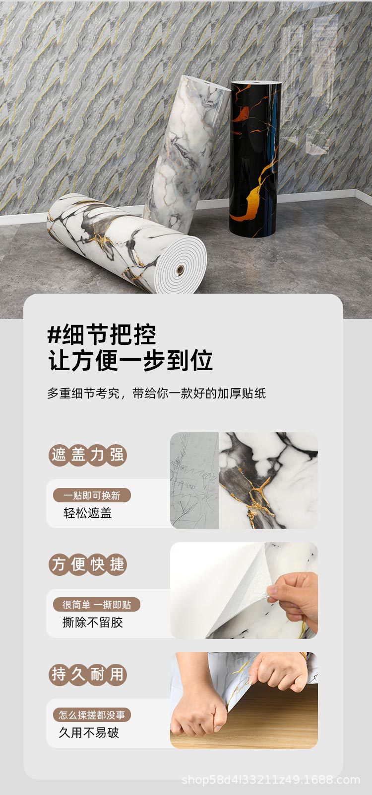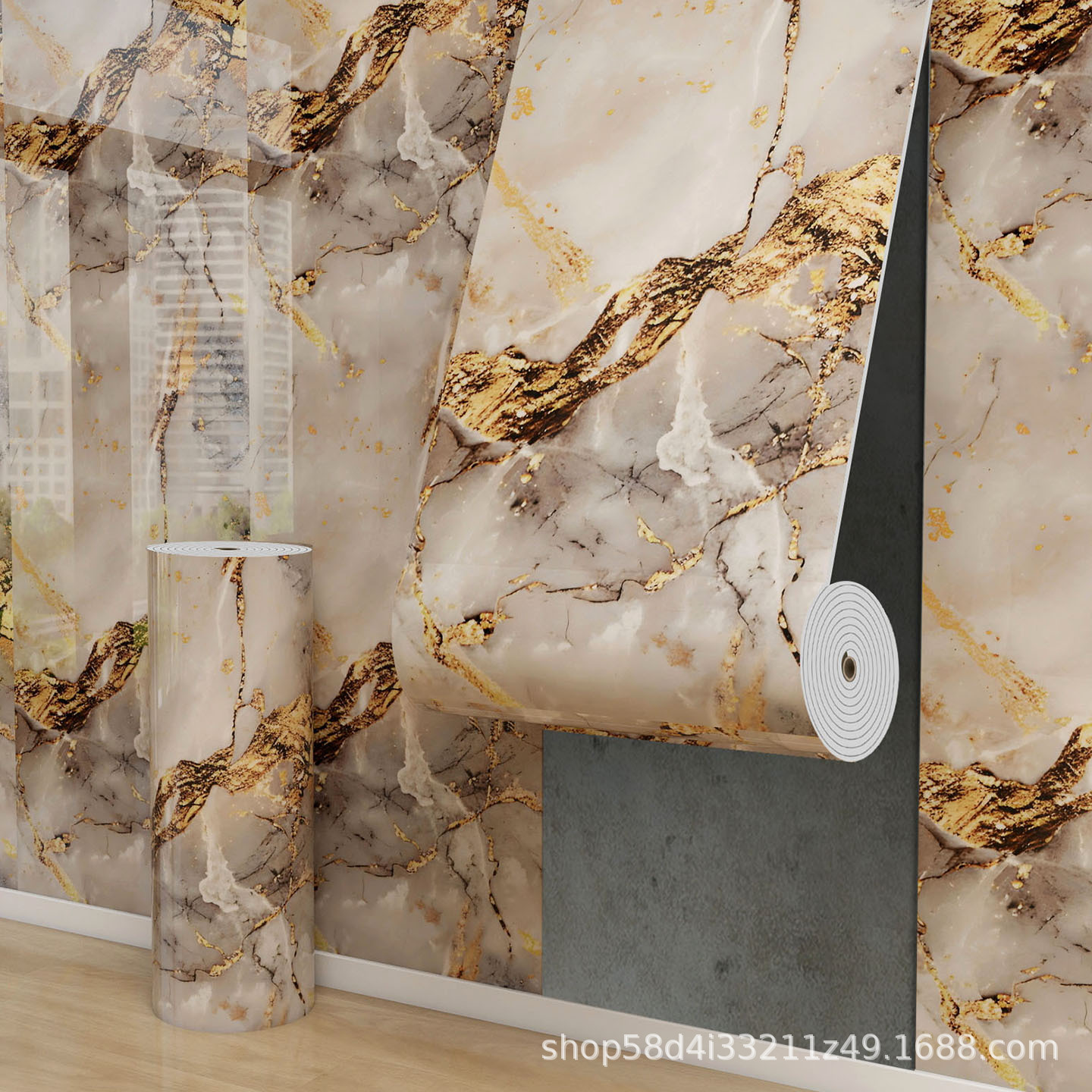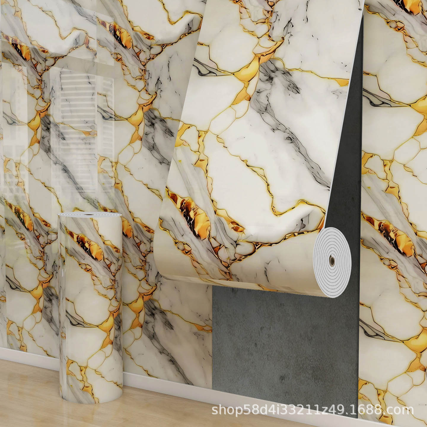 foreign trade imitation tile self-adhesive roll material marble wall sticker wall panel aluminum plastic plate living room bedroom wall decoration wallpaper 中文版