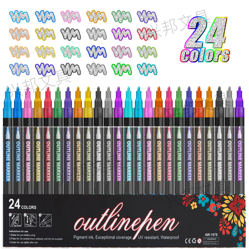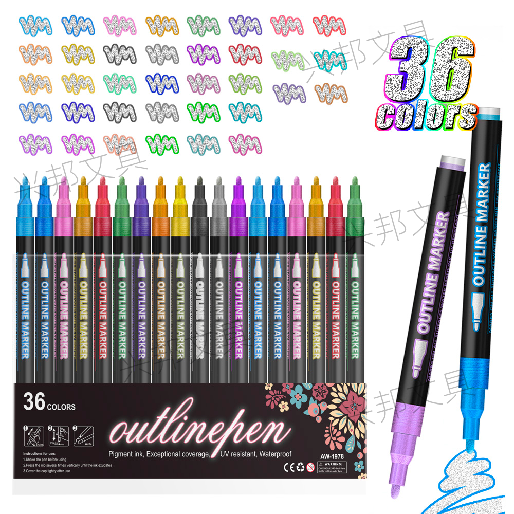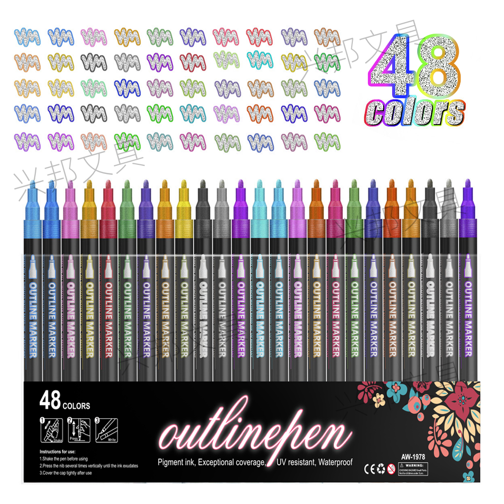 double line outline pen students do hand account color pencil art flash hand copy fluorescent pen marker pen 中文版