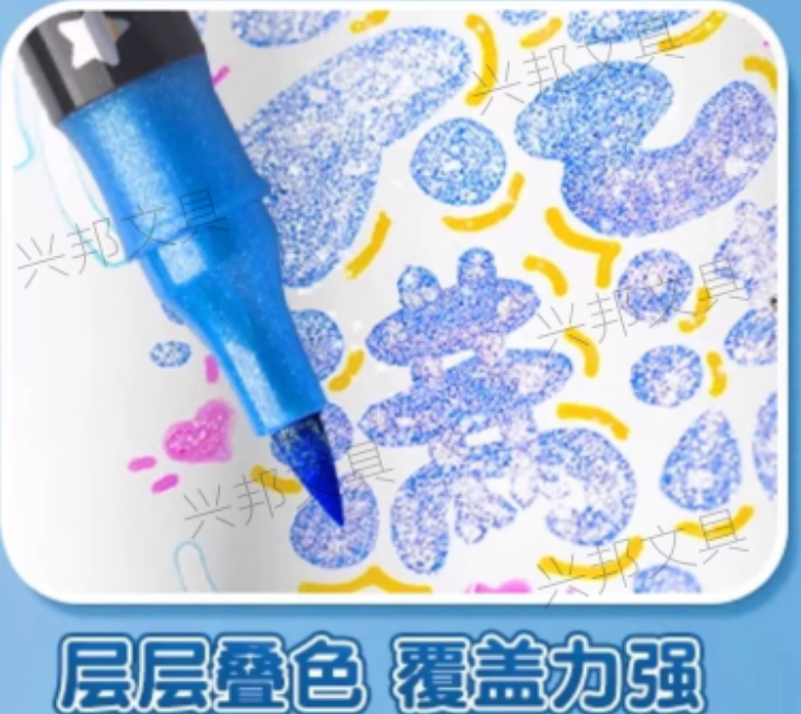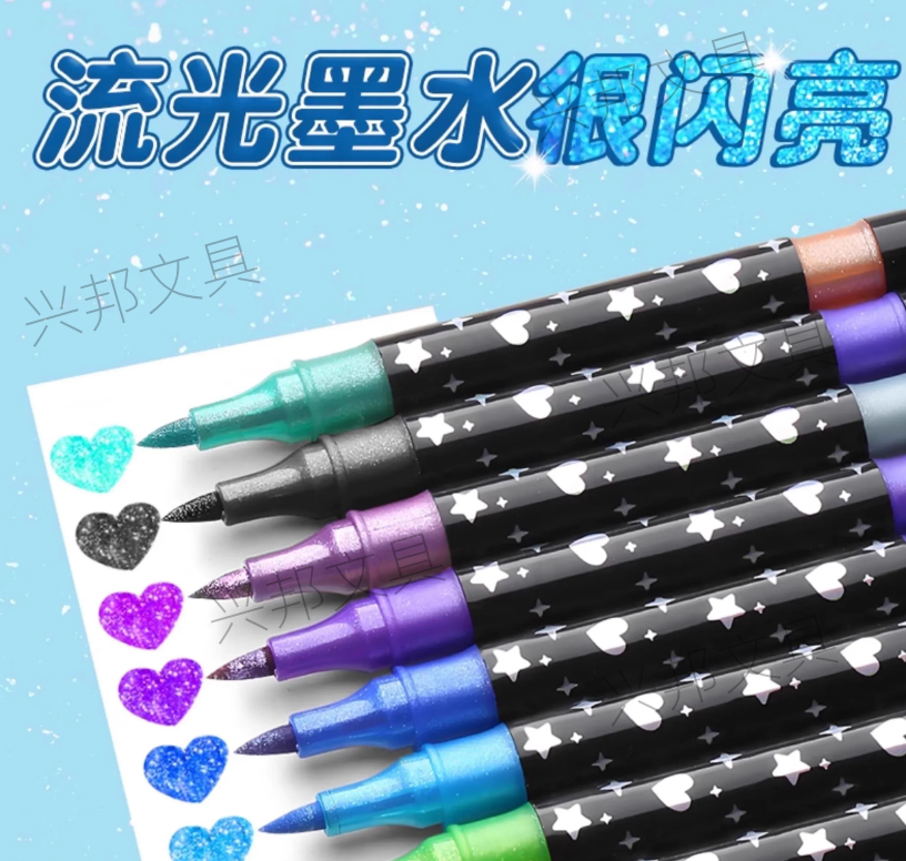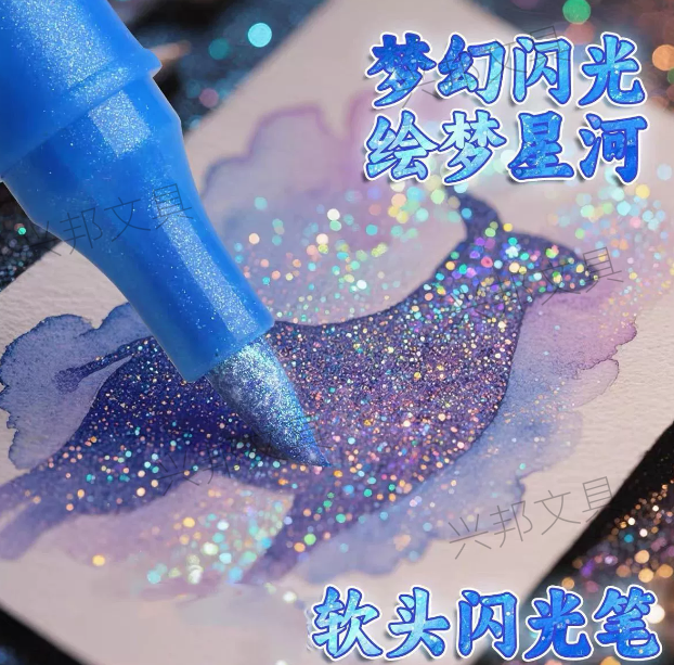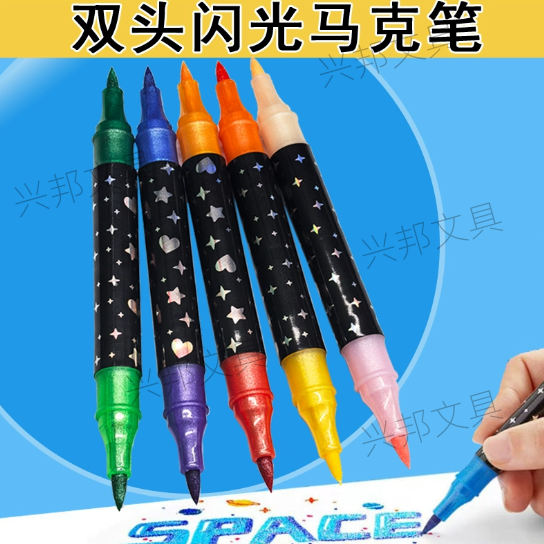 flash marker pen double-headed double ribbon glitter watercolor pen primary school student art soft head marker pen streamer pen 中文版