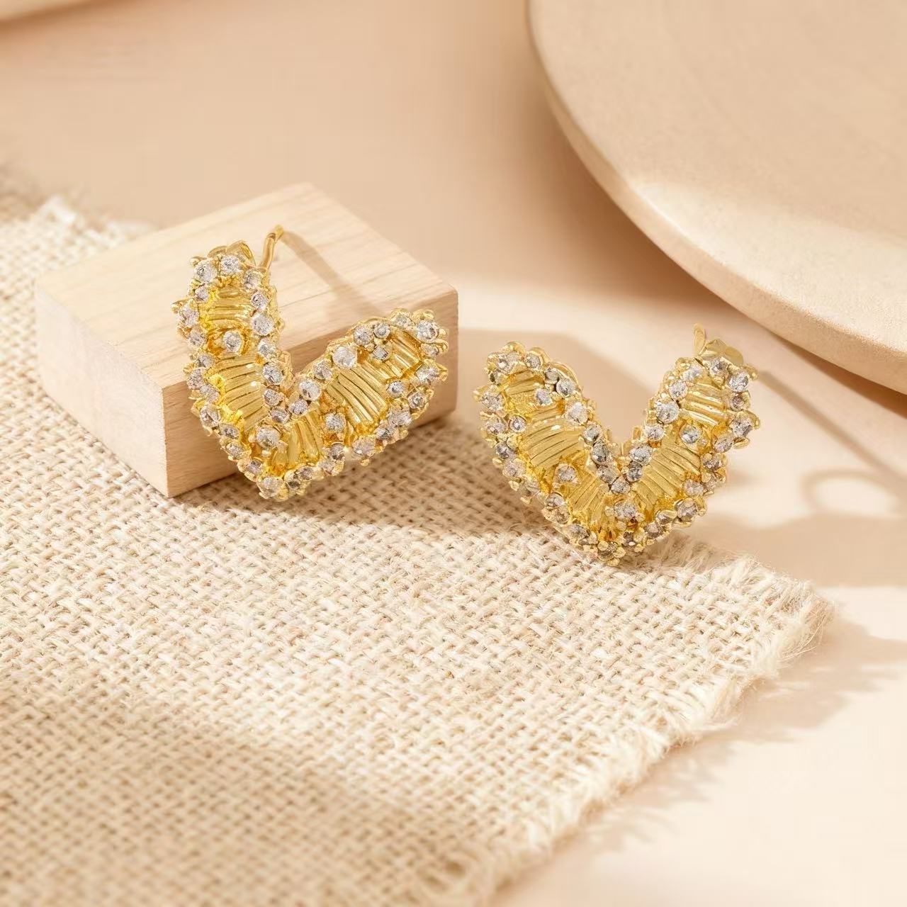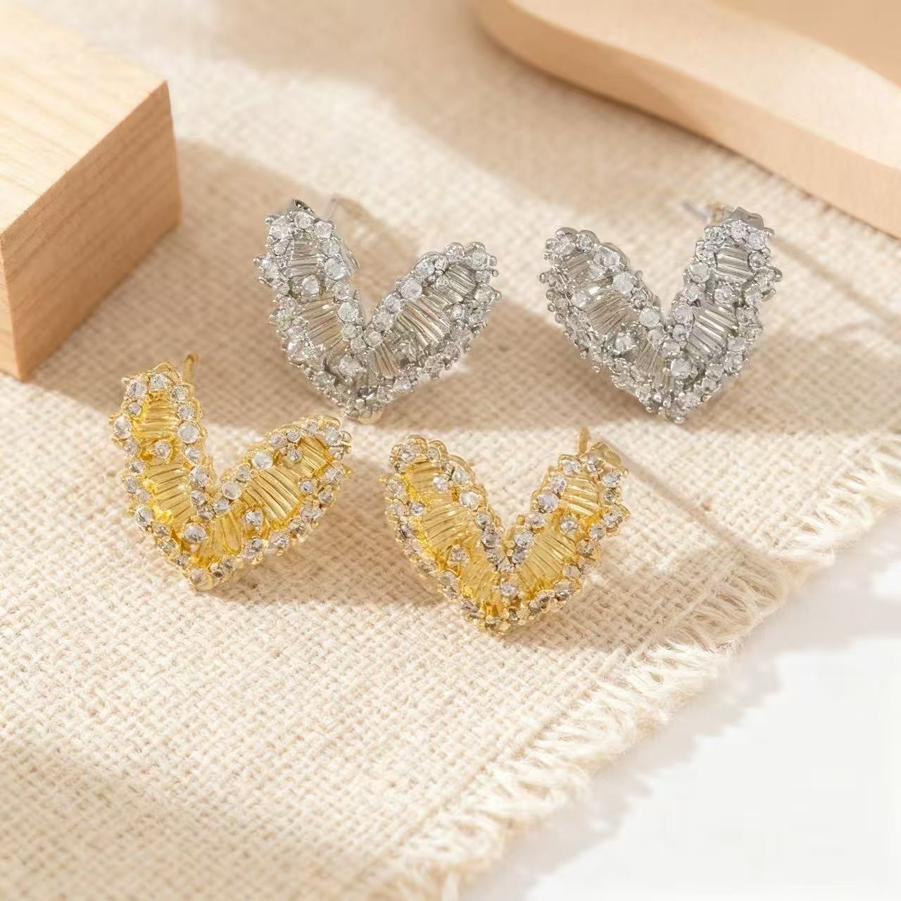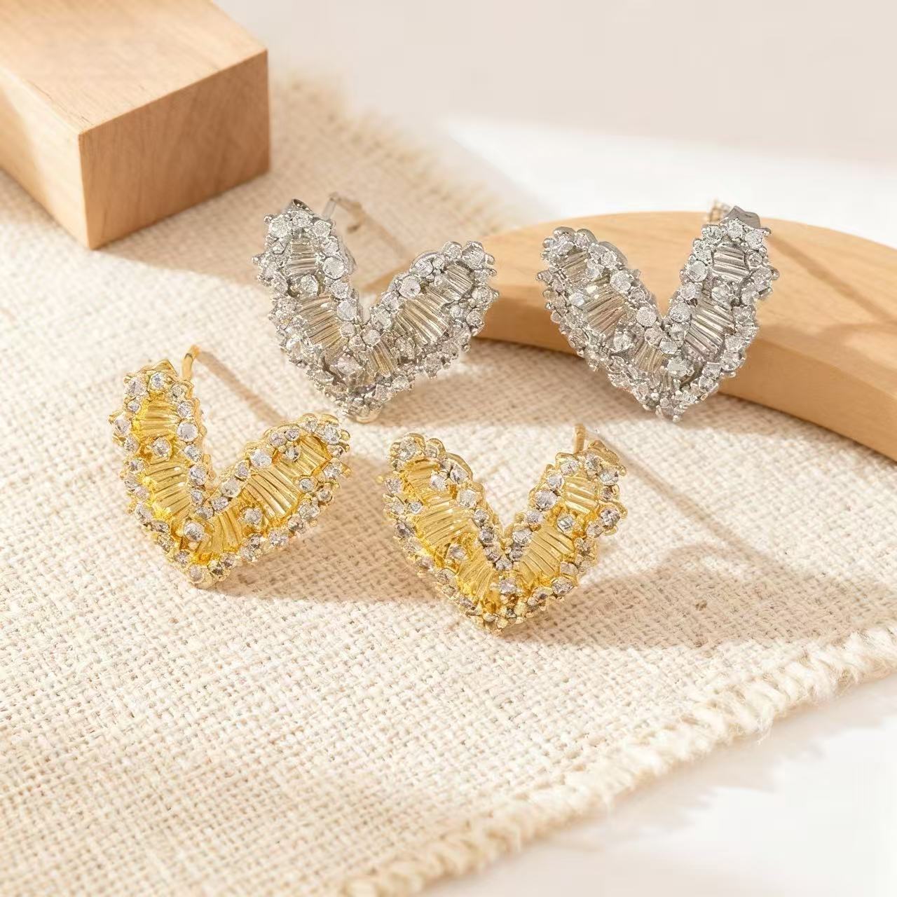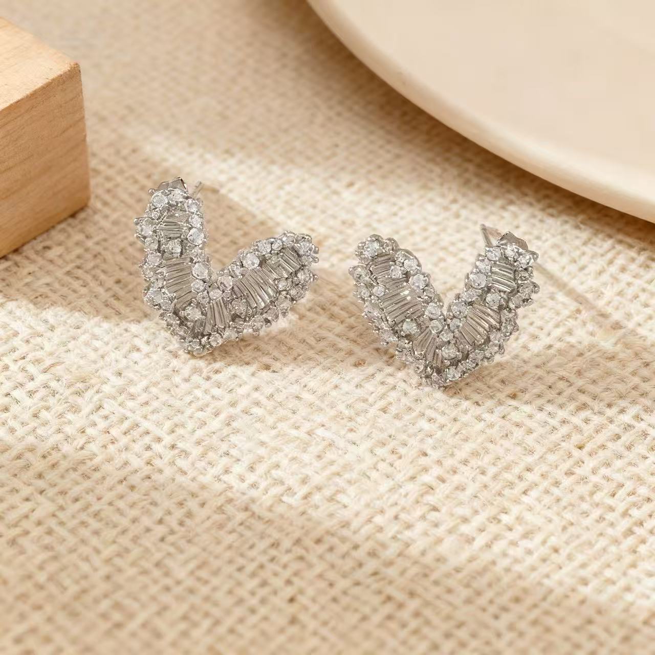 temperament trend heart-shaped zircon metal stud earrings affordable luxury style high-grade gentle simple stud earrings fashionable and versatile earrings 中文版
