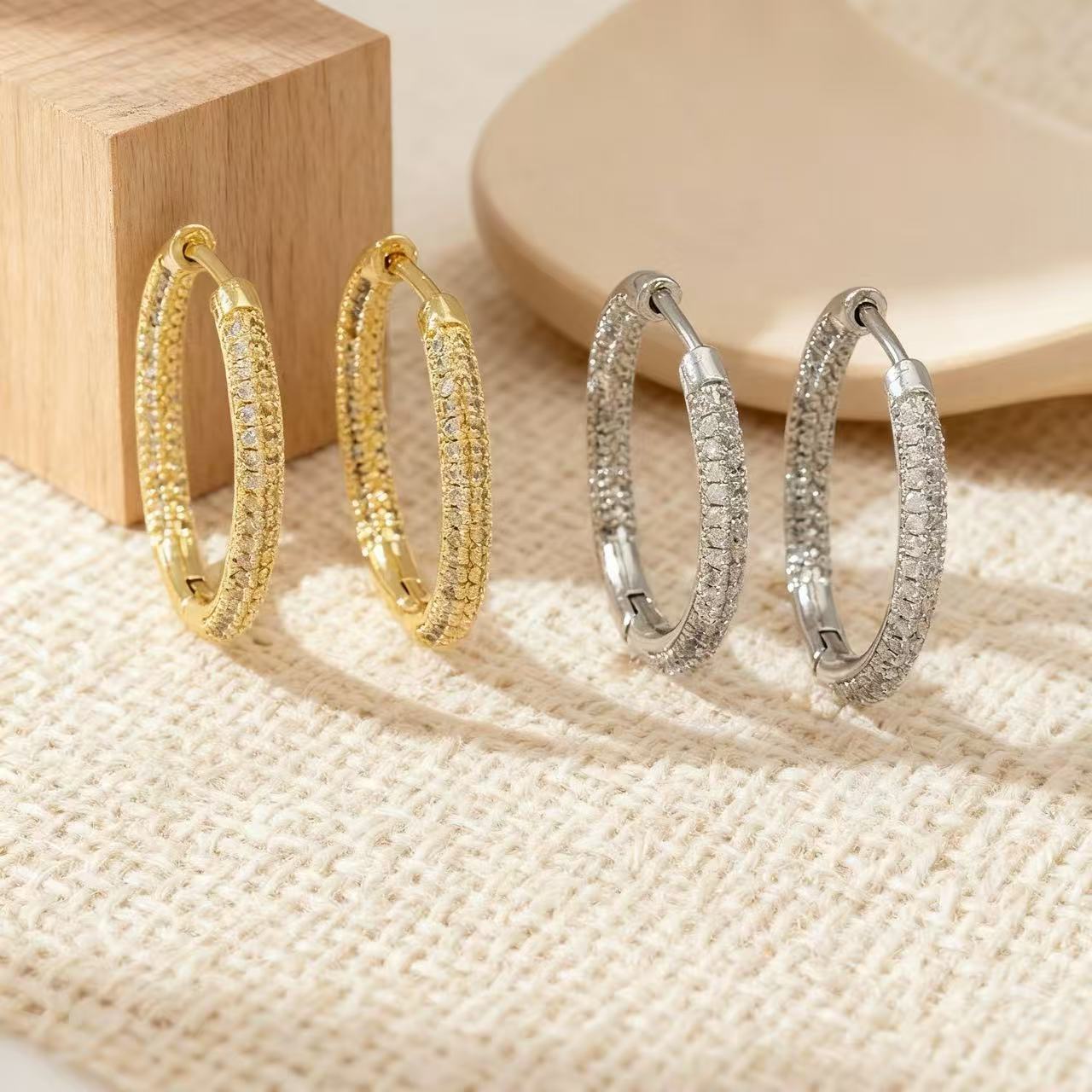 european and american ornament light luxury design high sense inlaid zircon hoop earrings exquisite fashion fashionmonger ear studs earrings for women 中文版