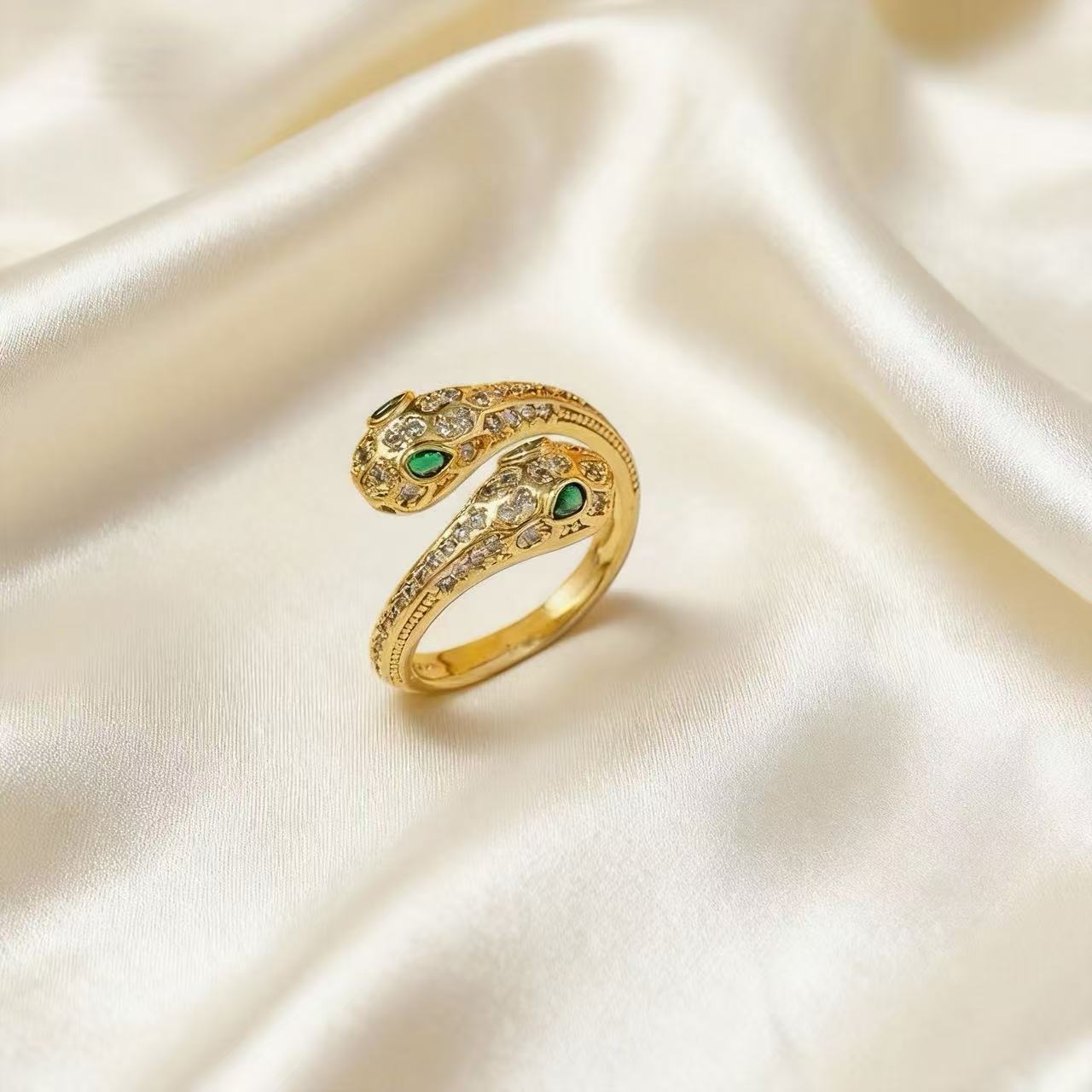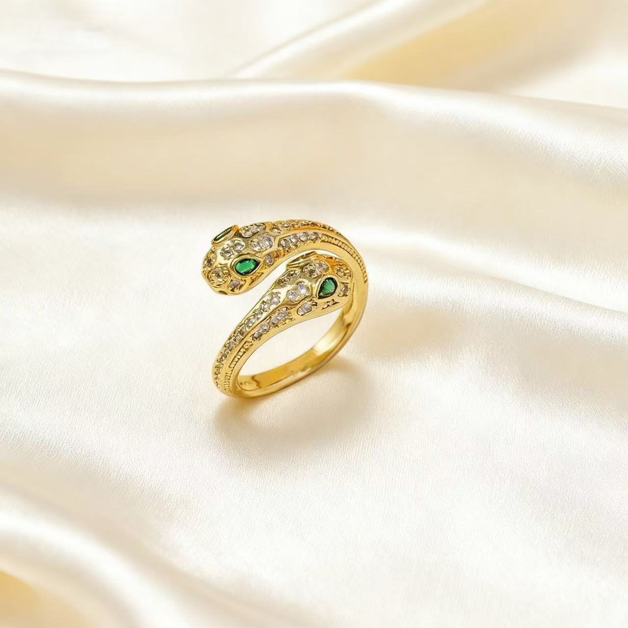 cross-border new arrival green eye snake-shaped open ring slightly inlaid zircon non-fading special-interest design adjustable light luxury ring 中文版