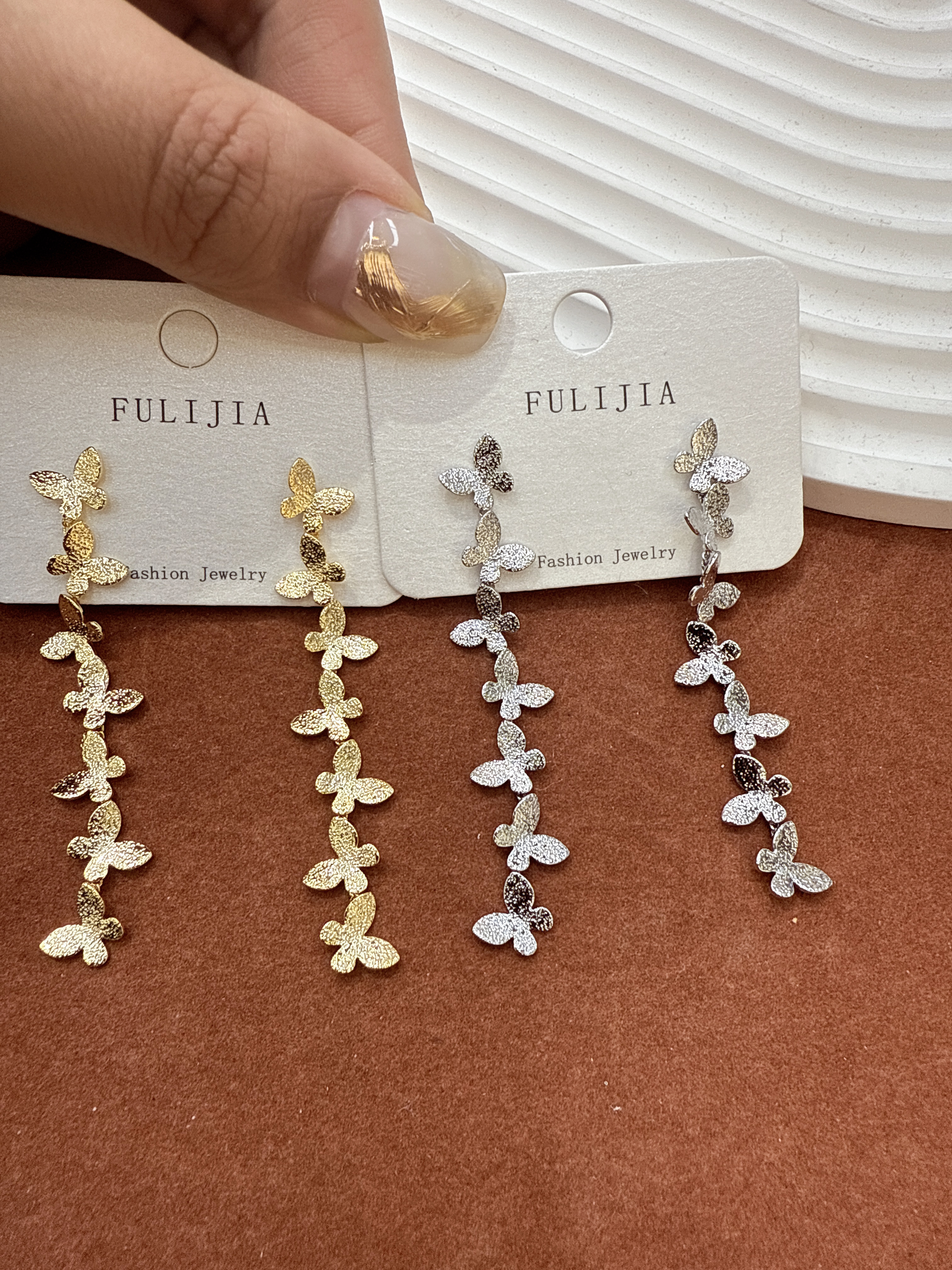 Small Xiangfeng Four-leaf Clover Cross-body Tassel Earrings in Copper with Gold Plating, High-end Sense Korean Style Women's Ear Jewelry
