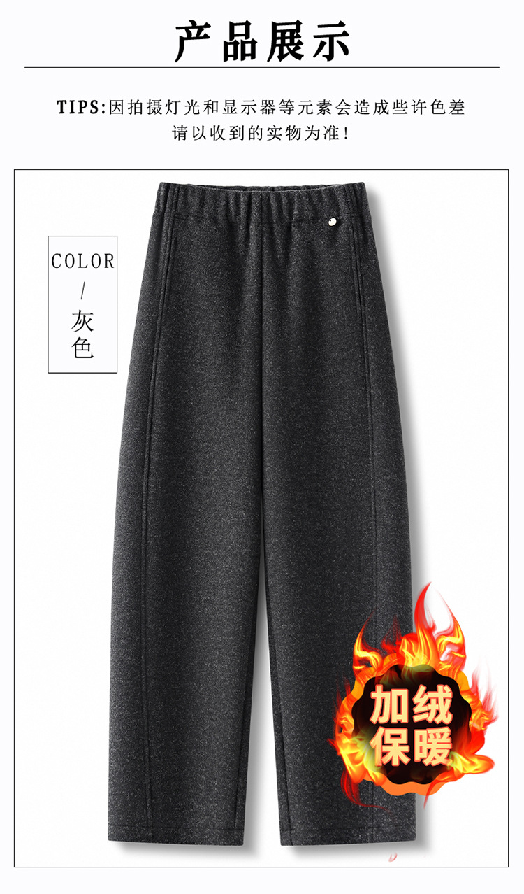 cropped tencel wool wide-leg matchet pants women's 2025 winter new fleece-lined warm and loose casual banana pants 中文版