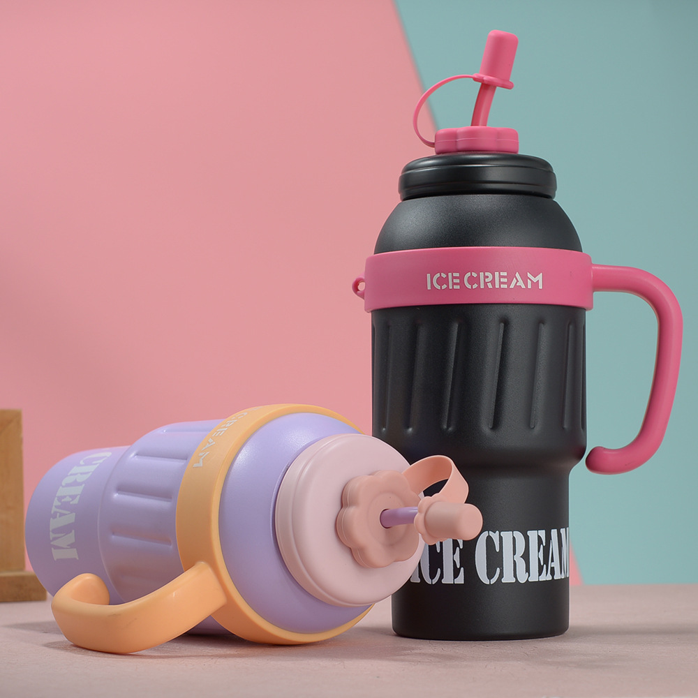 304 stainless steel vacuum cup new large capacity heat and cold insulation water cup big mac large ice cup water cup with straw 中文版