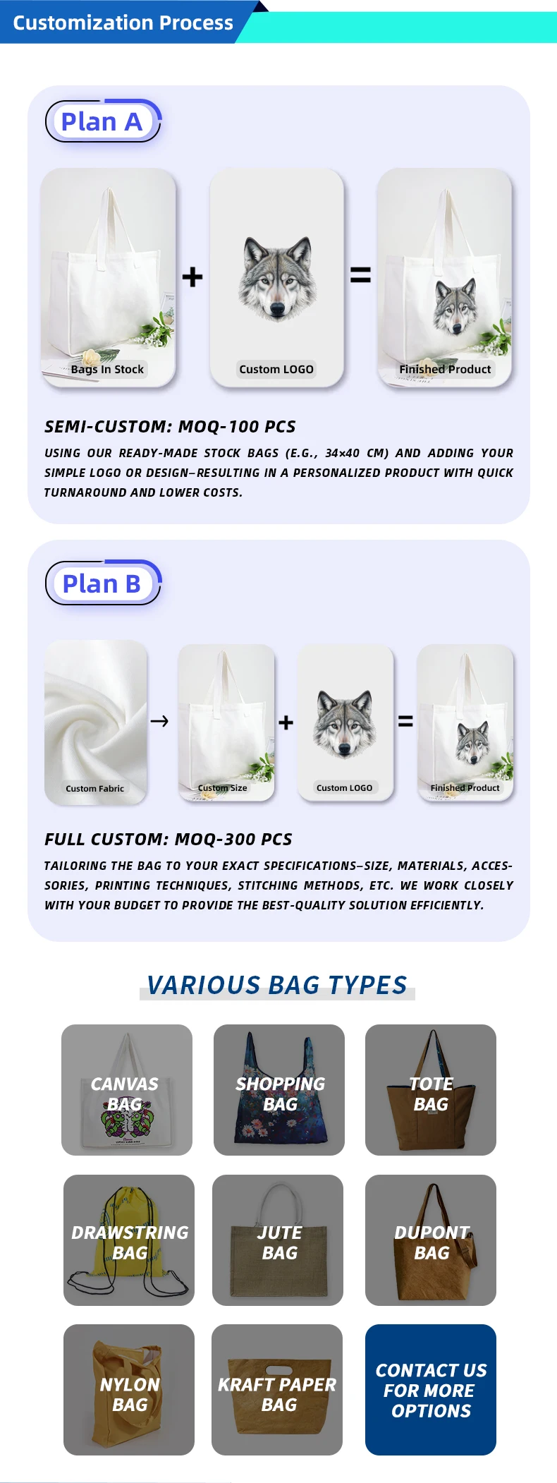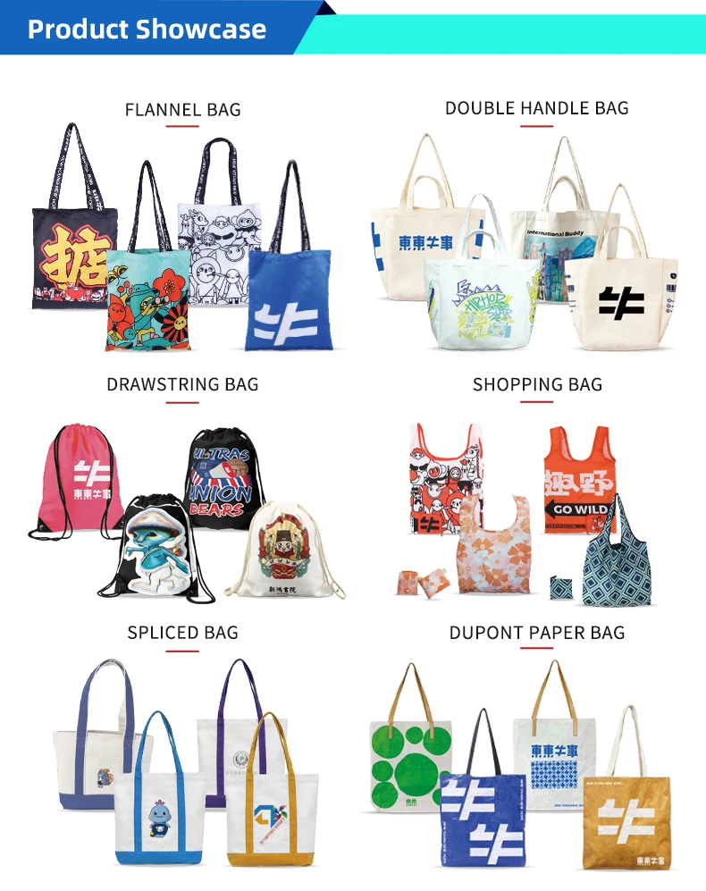 Cotton, canvas, nonwoven, jute, dupont paper, oxford, nylon, etc.