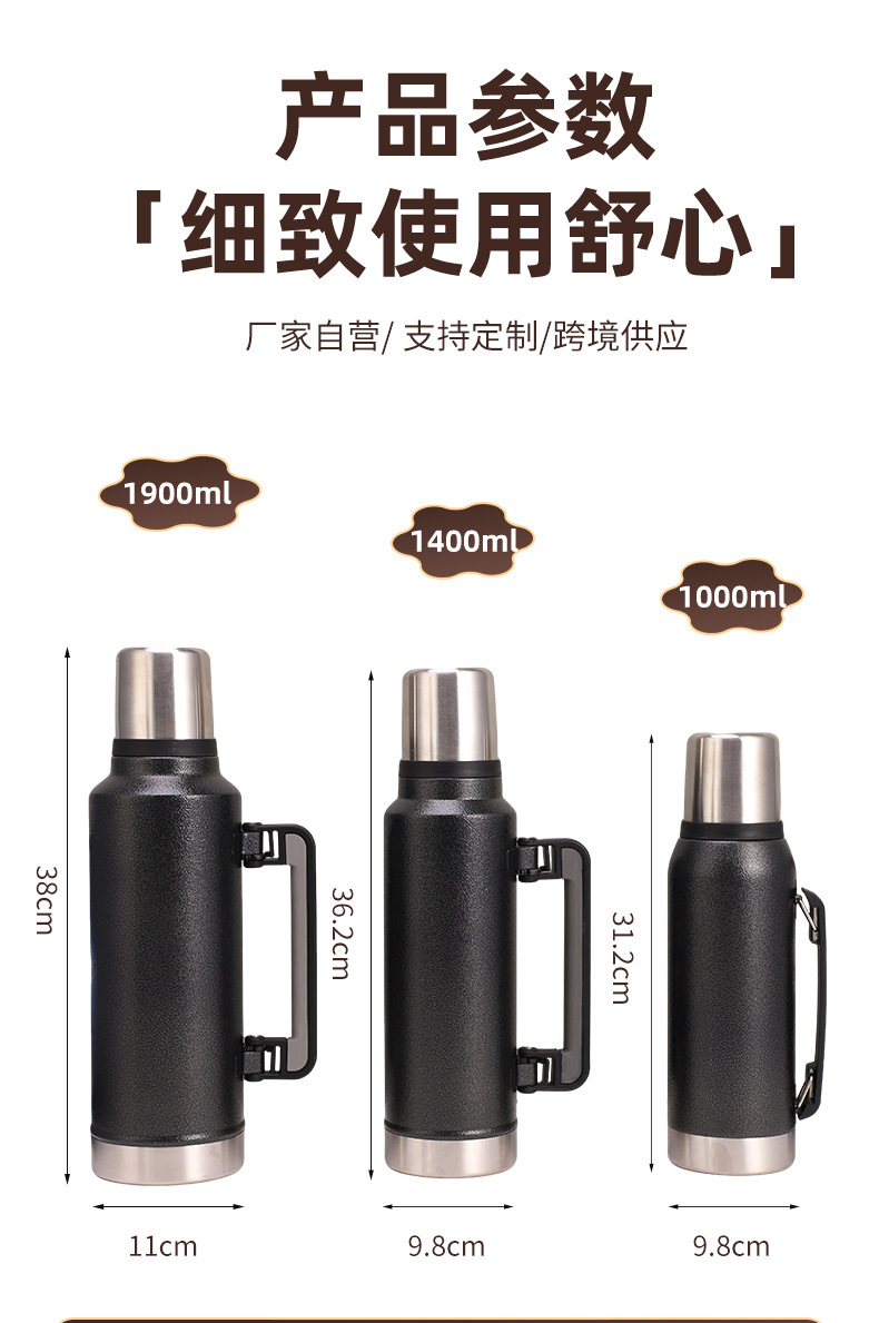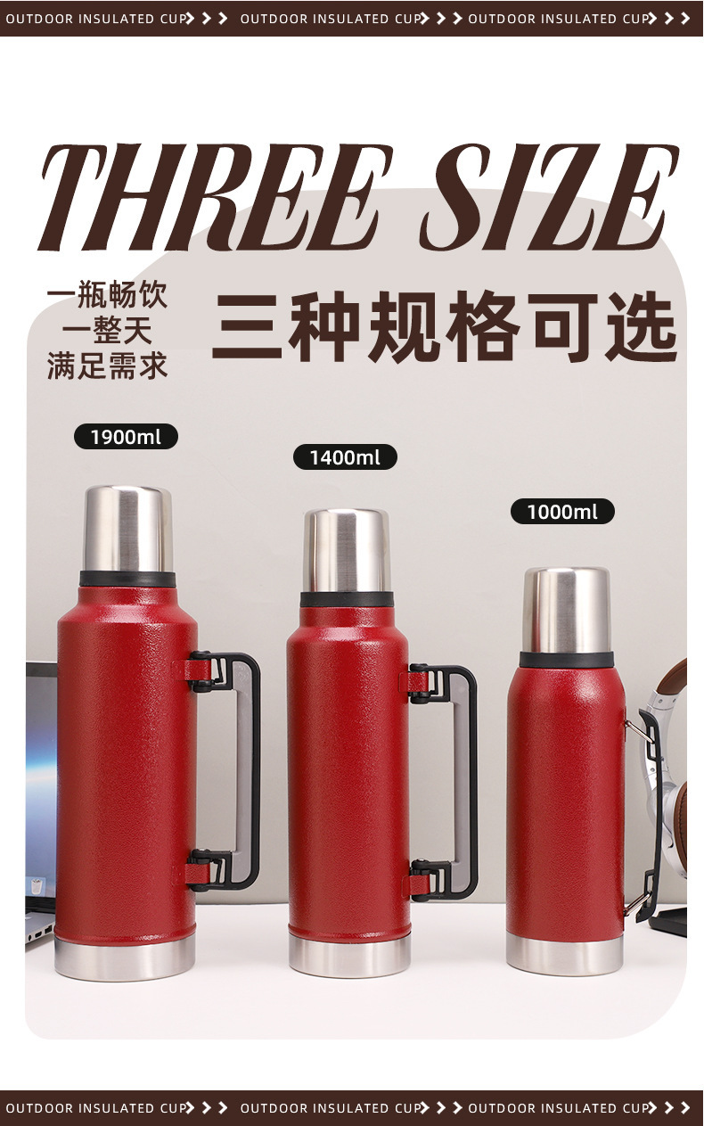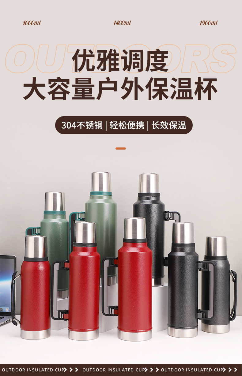 1282#304 stainless steel vacuum insulated pot large capacity portable travel pot outdoor climbing pot with handle wholesale 中文版