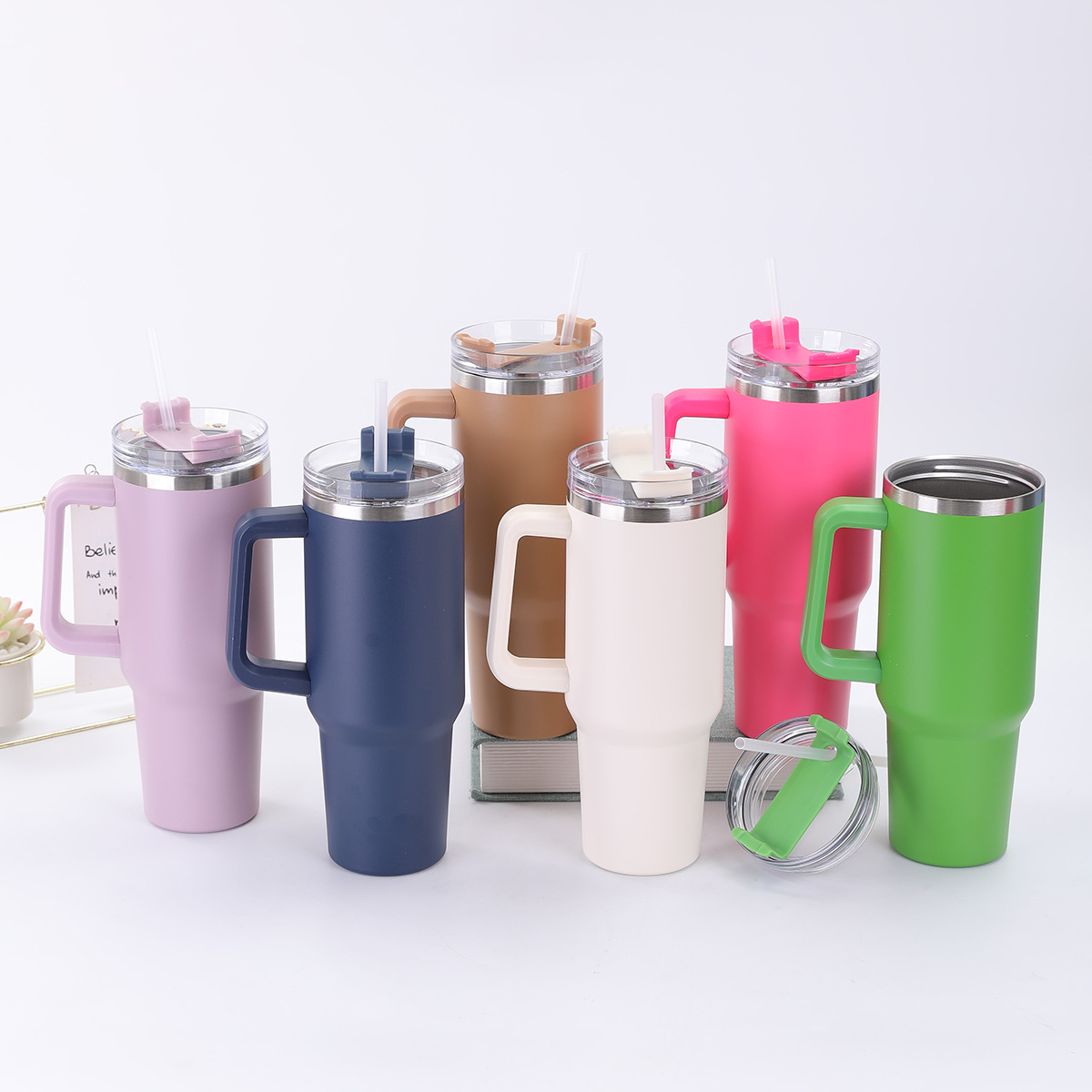 cross-border 40oz generation car cup 304 stainless steel thermos cup with handle portable office cup with straw 中文版