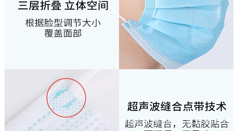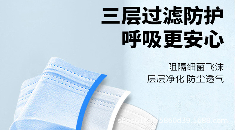 junda disposable ordinary civilian mask thin breathable and dustproof with meltblown fabric three-layer protective factory direct sales 中文版