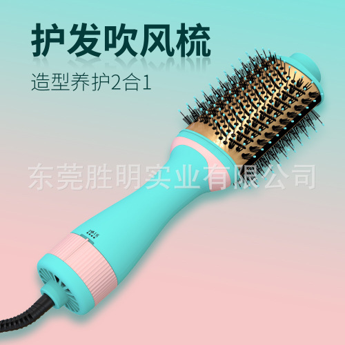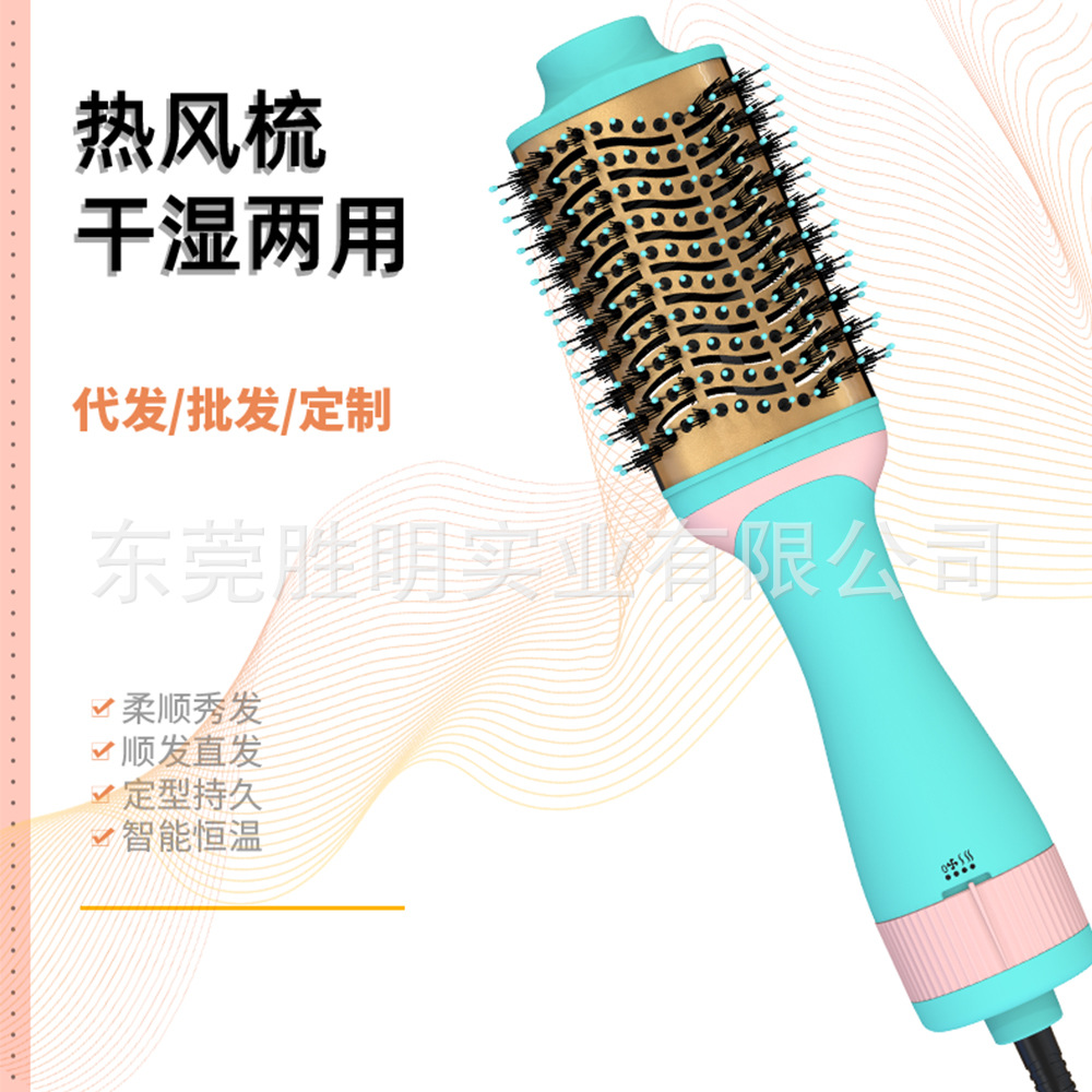 cross-border amazon hot air comb new hot selling massage hot air comb straight roll two-in-one anion source factory 中文版