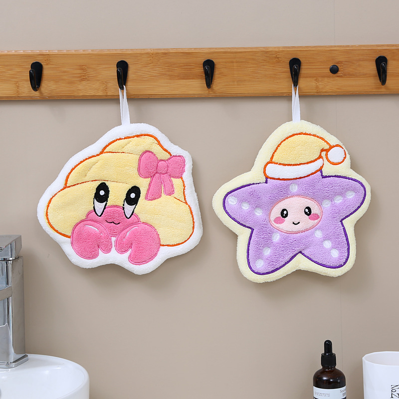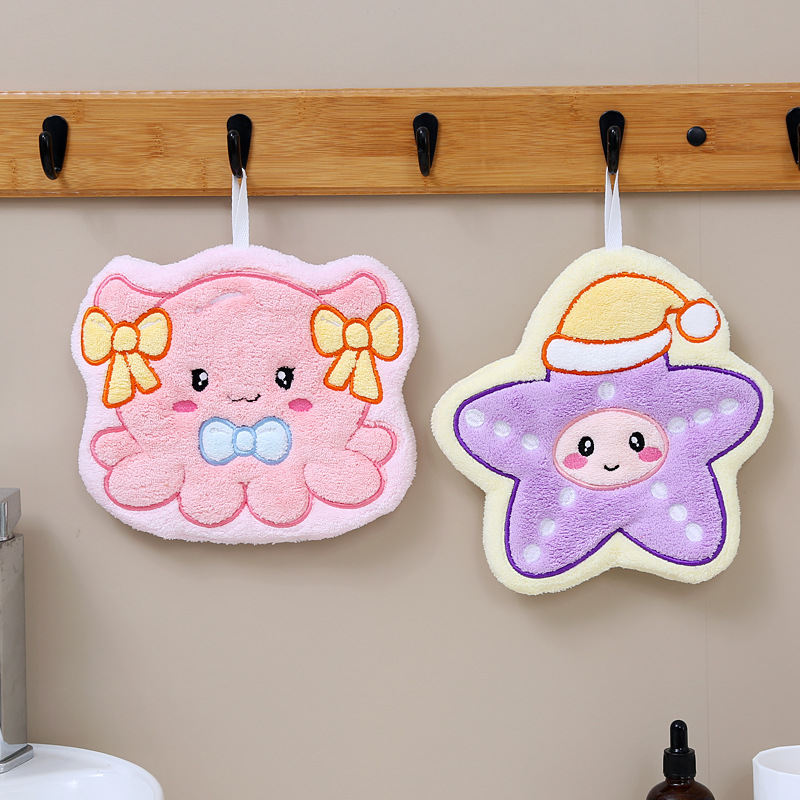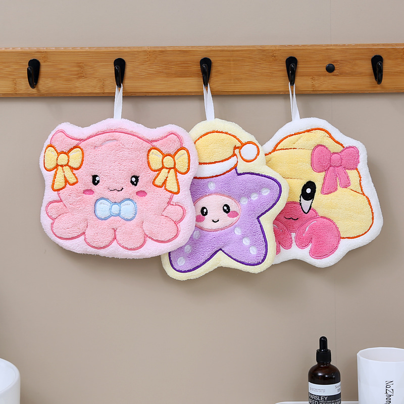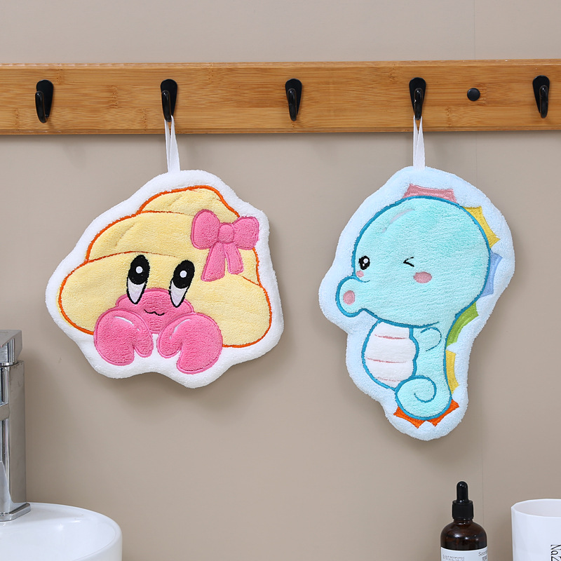 customized cartoon coral fleece hand towel kitchen hook rag cute shape quick-drying absorbent children towel wholesale 中文版