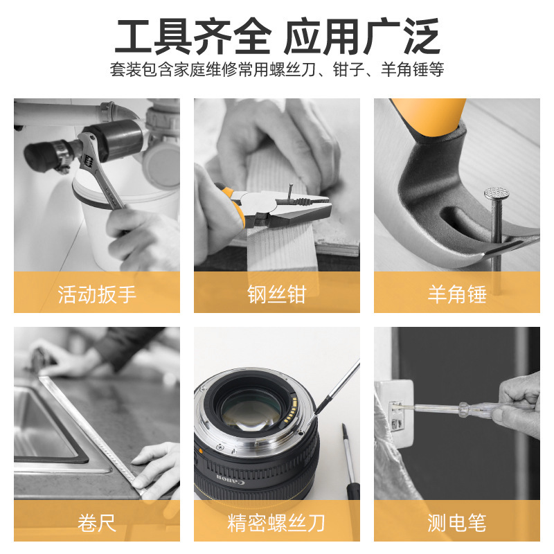 cross-border hot selling multifunctional household hardware gift set tools pliers wrench hammer family maintenance toolbox 中文版