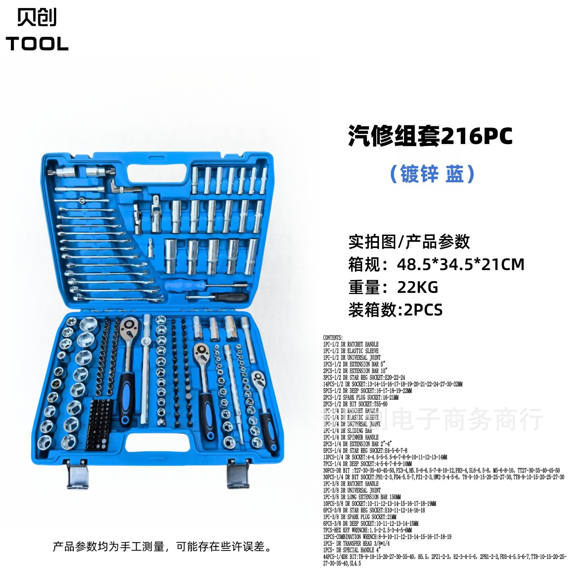 auto repair tools 216pc (galvanized heat-free blue)