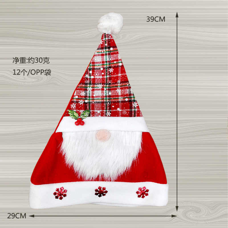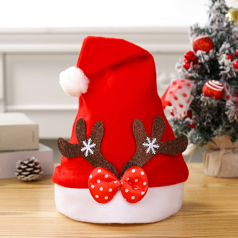 【Product Name】Cross-border hot-selling Christmas decorations, bright red non-woven Christmas hats, plush long-fiber toy Christmas gifts