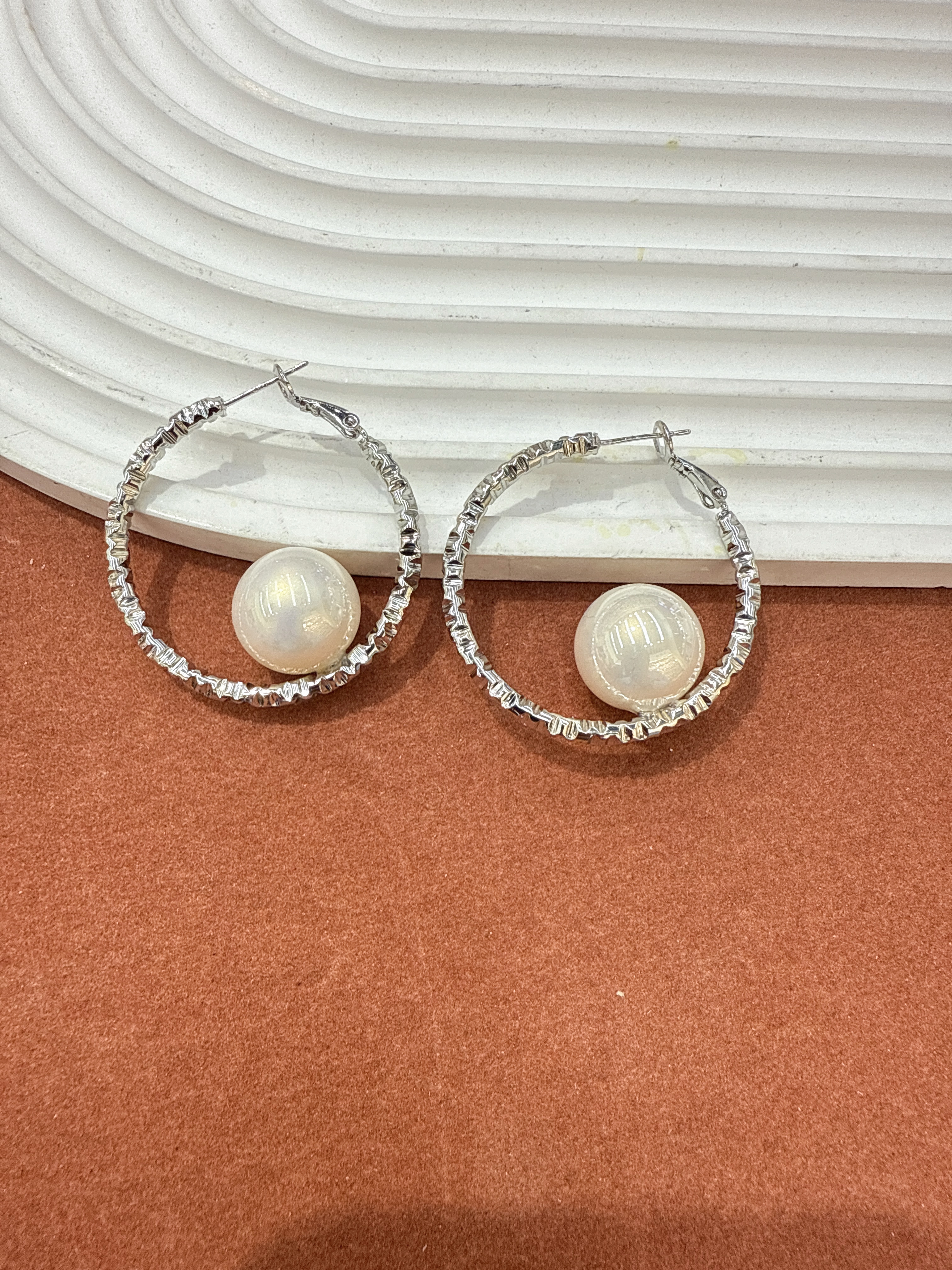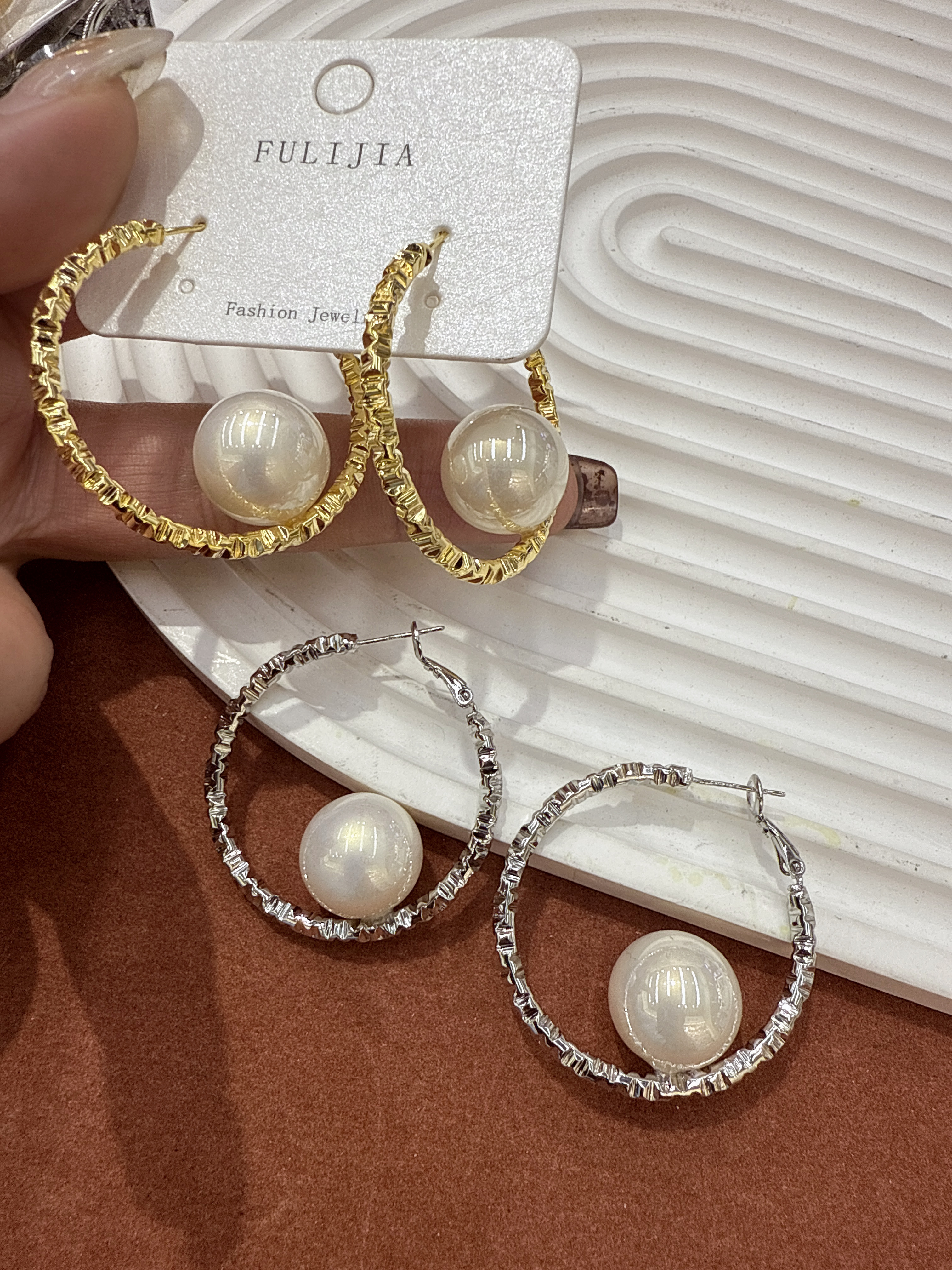 New Trendy Gold Large Hoop Earrings with European Style, Fashionable, Versatile, Simple and Elegant Pearl Earrings