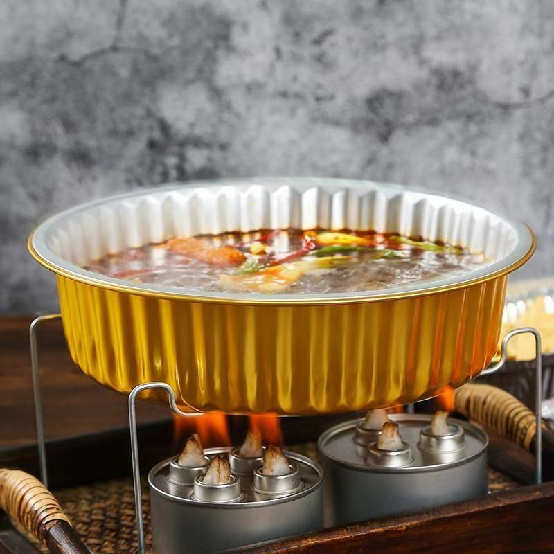 takeaway disposable grilled fish small hot pot sets tin tray aluminum foil box bracket round lunch box heating takeaway dedicated
