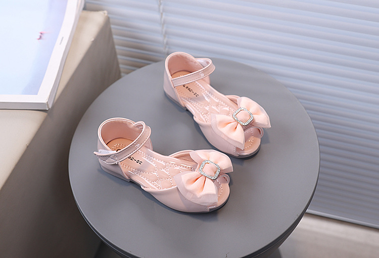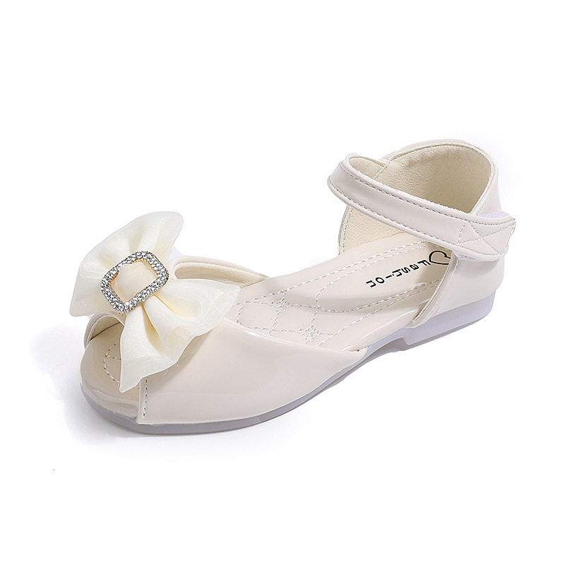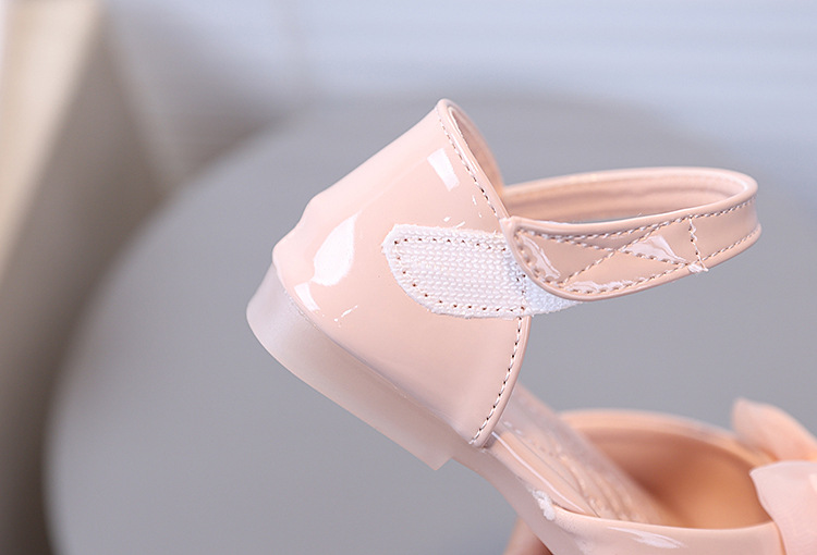 ribbon square buckle bow decoration girls' shoes bright leather soft soled princess shoes fish mouth children princess sandals 中文版