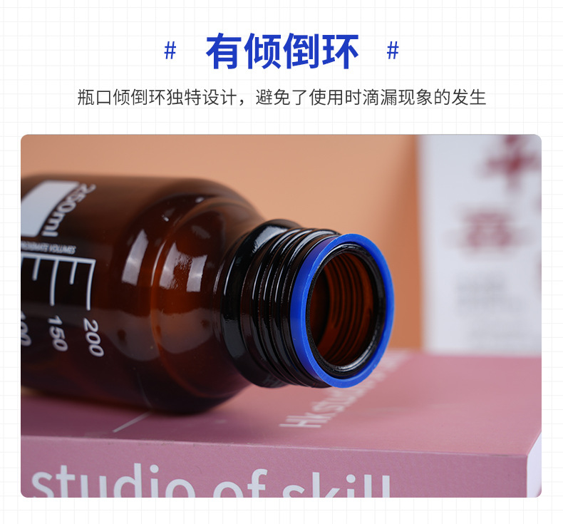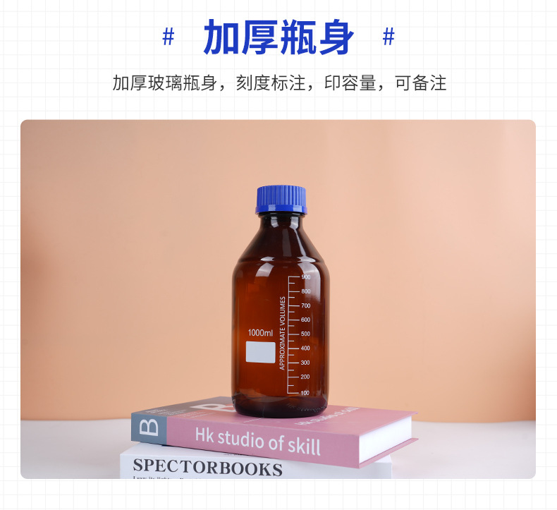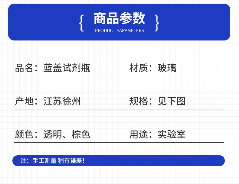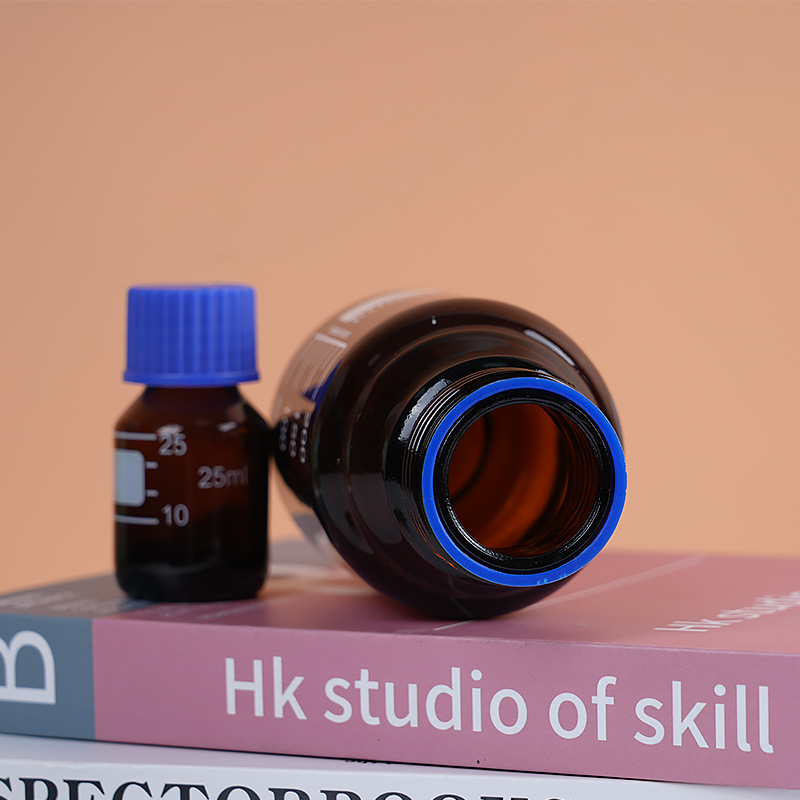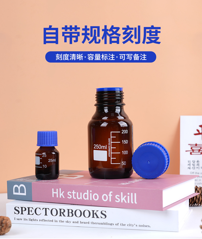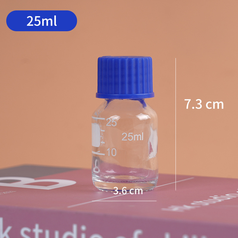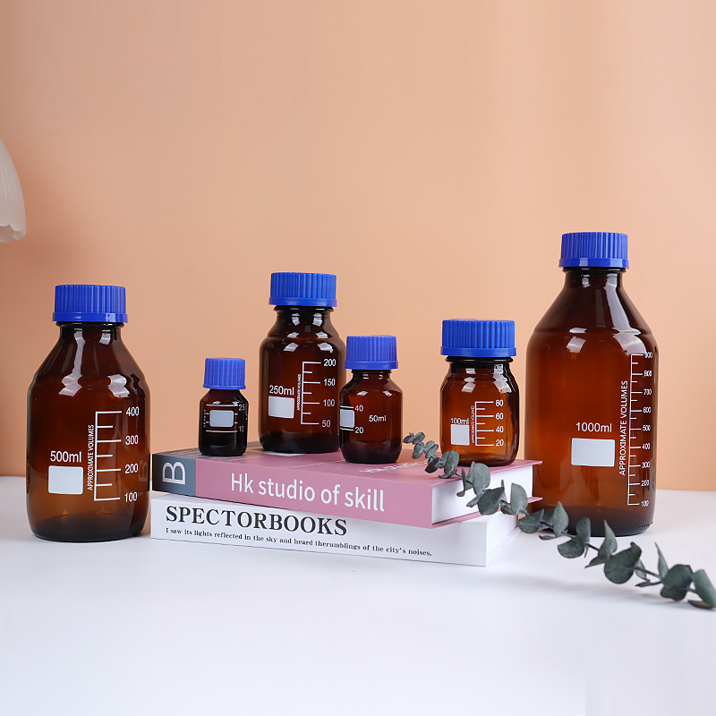 wholesale wide mouth blue cover reagent bottle screw mouth experiment bottle transparent brown with scale capacity remark glass bottle