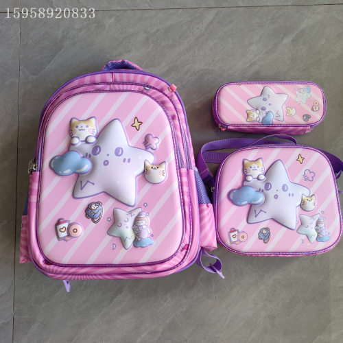 schoolbag backpack children's bags three-piece trolley bag school bag 3d bag stationery box lunch box 中文版
