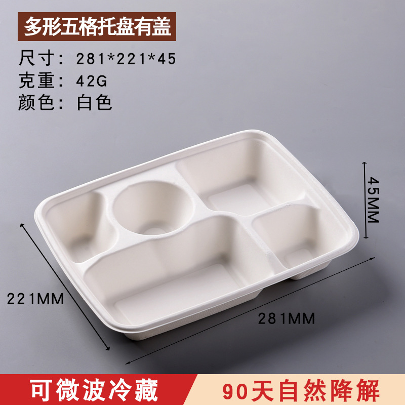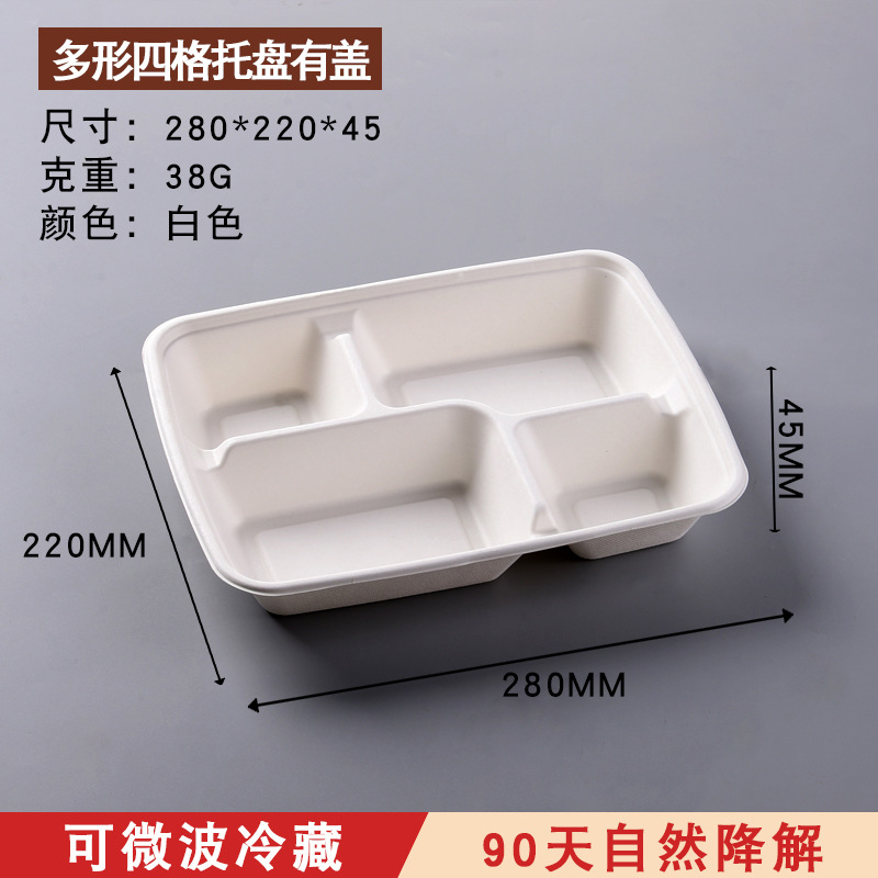 factory wholesale disposable service plate degradable tableware pulp lunch boxes three grids and four grids lunch box tray buffet plate