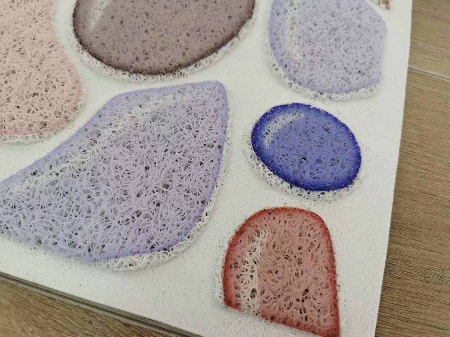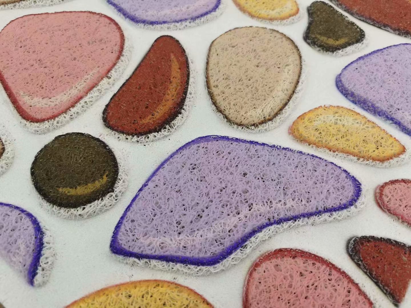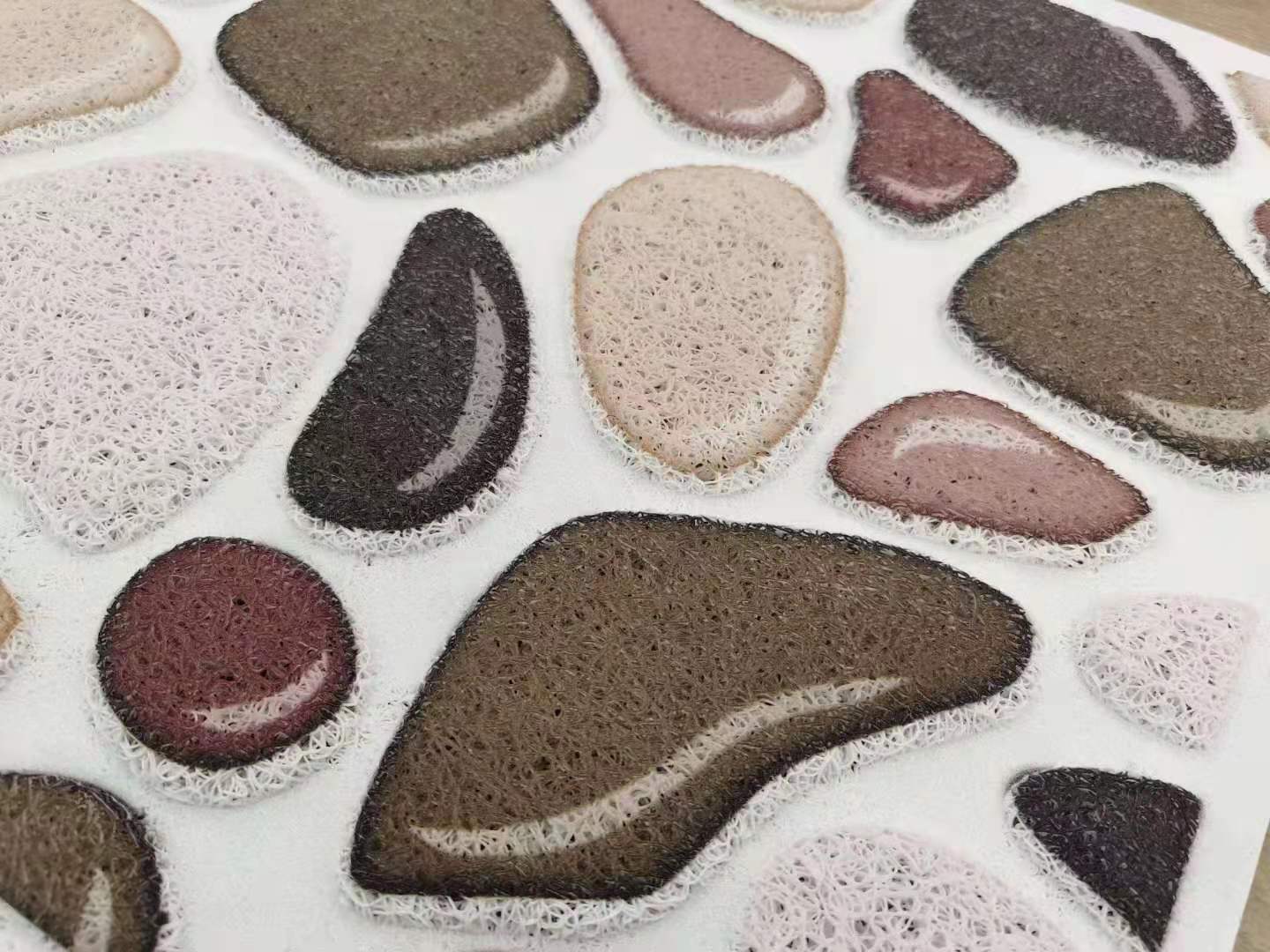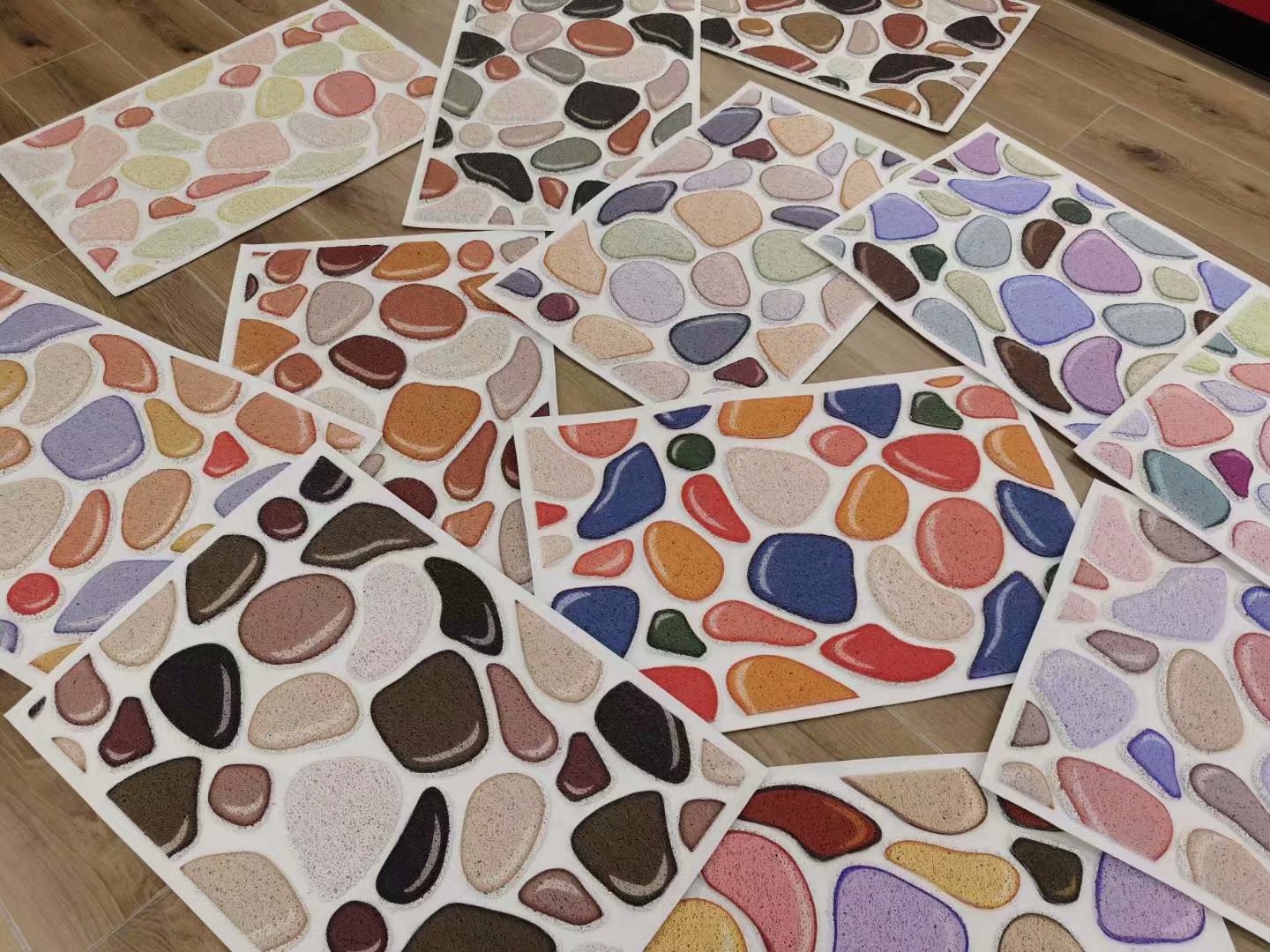 Each square weighs about 2000 grams, about 10MM thick, with a PVC mesh bottom, colors and patterns are mixed in random, and if the quantity is large, they can be mixed according to the customer's requirements.