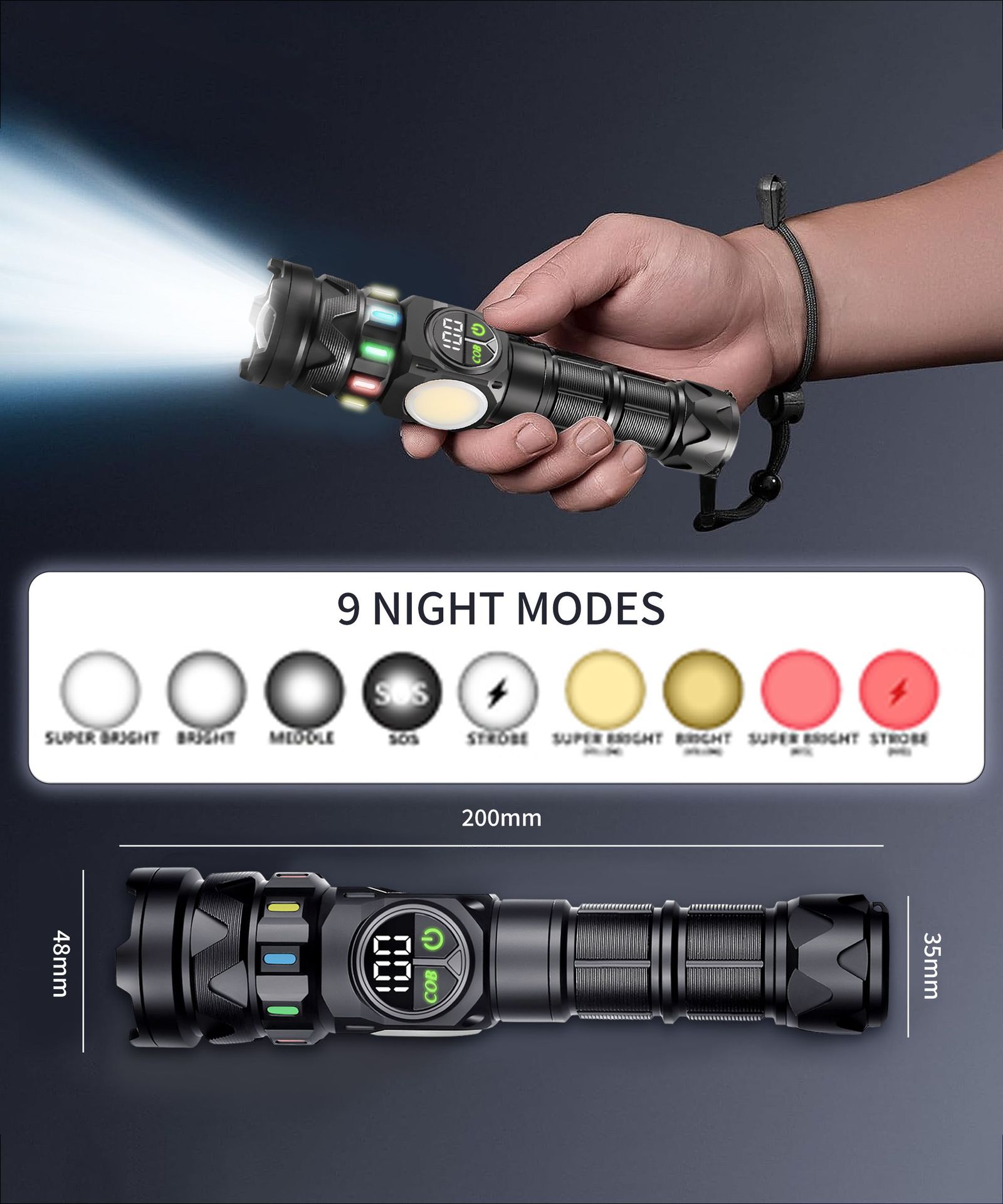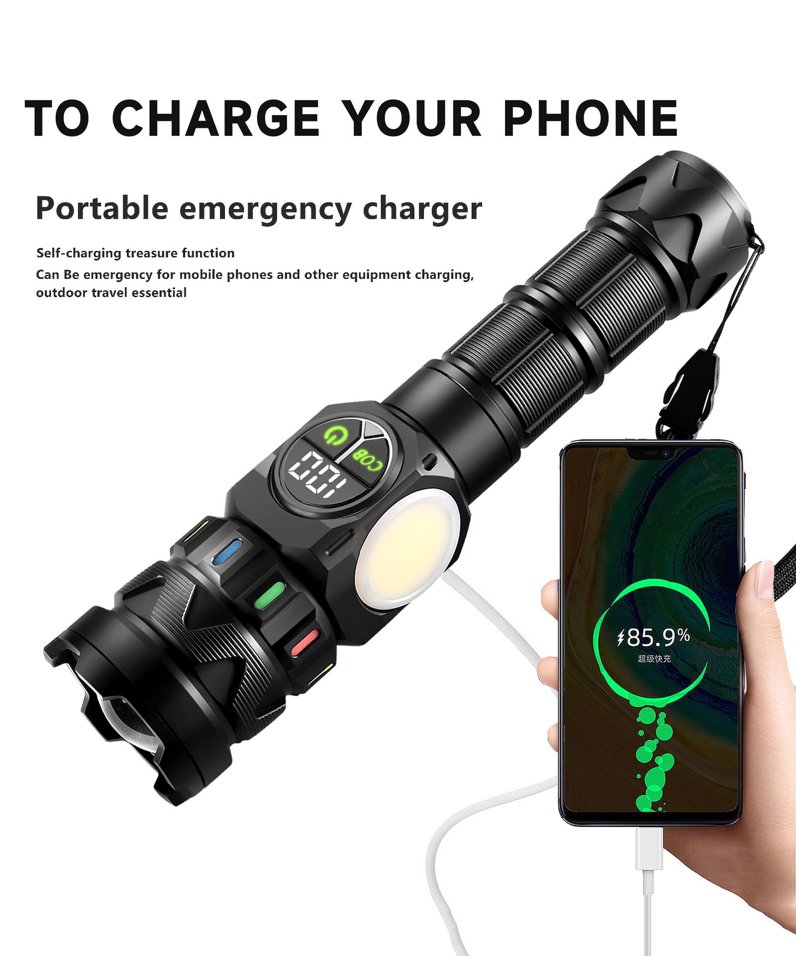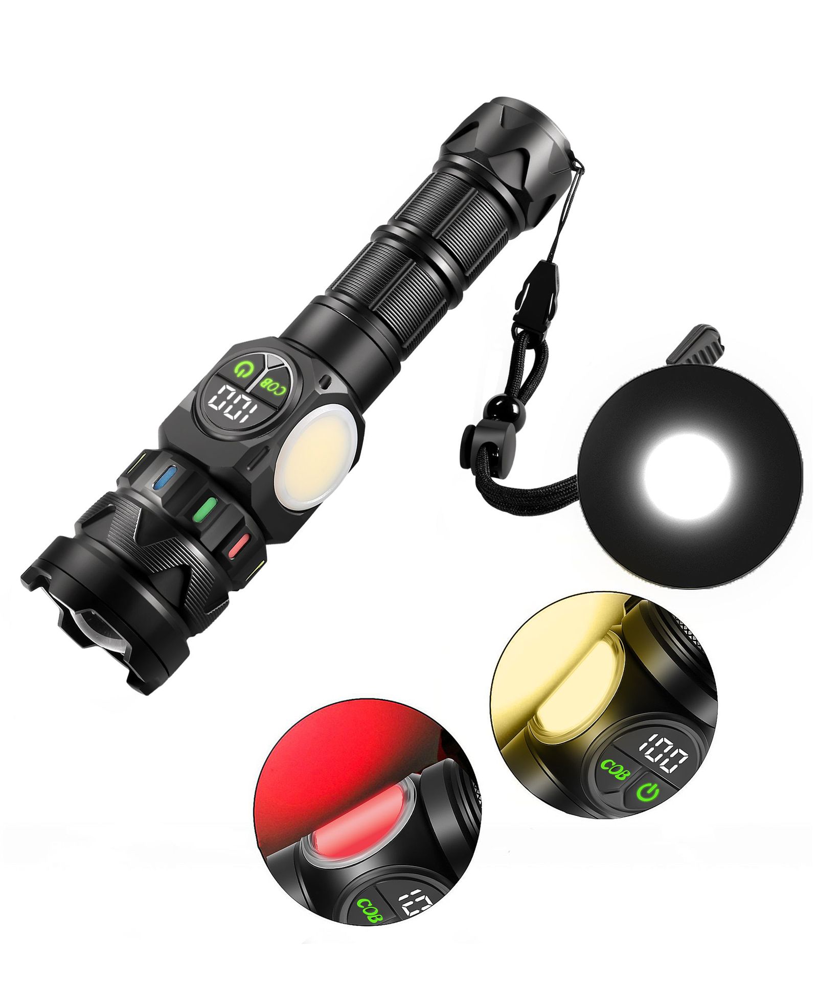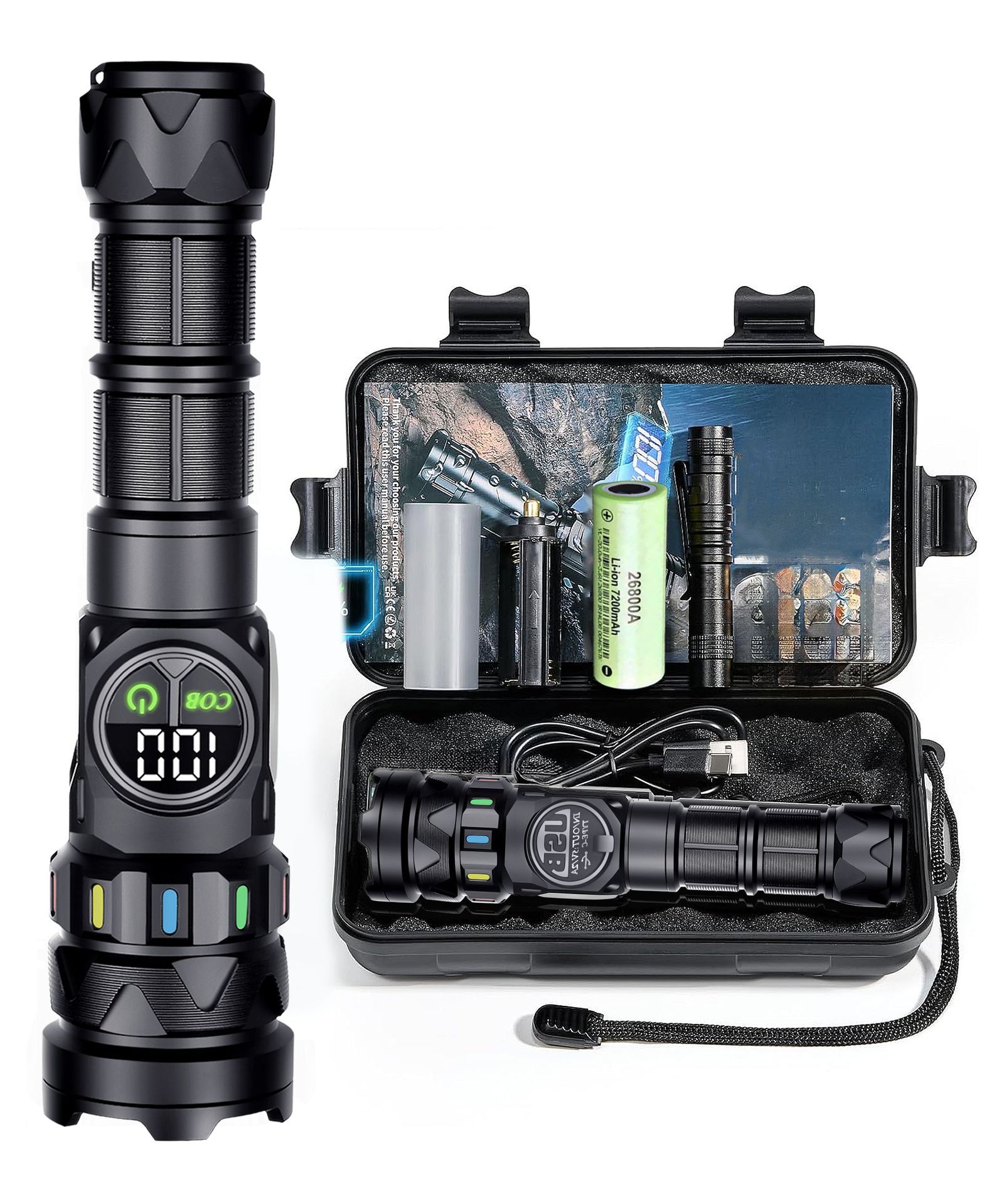 | cob10 flashlight kit 26800a battery with fluorescent strip 7200mah + data cable + color box + 3a casing | ¥92.5 | 9907 box available |