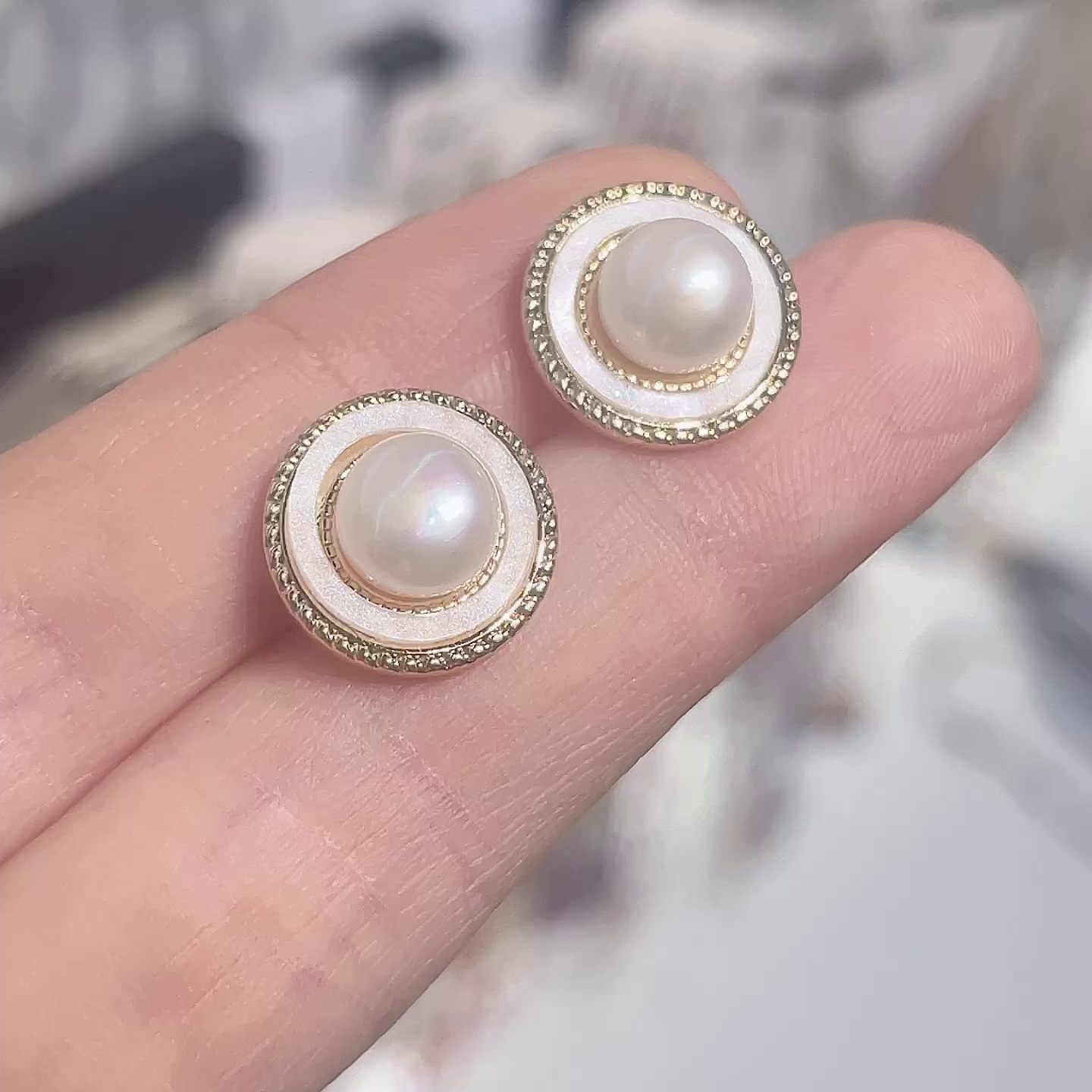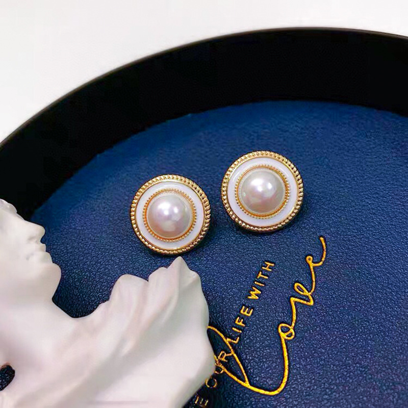Retro court style circle shell earring with Hong Kong style s925 silver needle inlaid with natural freshwater pearl earrings