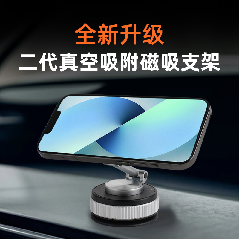 The brand new upgraded second-generation vacuum suction magnetic stand features strong suction force, does not obstruct the line of sight, is made of full body alloy, has dual row strong magnets, rotates 360 degrees, has a folding design, is delicately small, is stable and non-skid, and can be used for both landscape and portrait screens.
