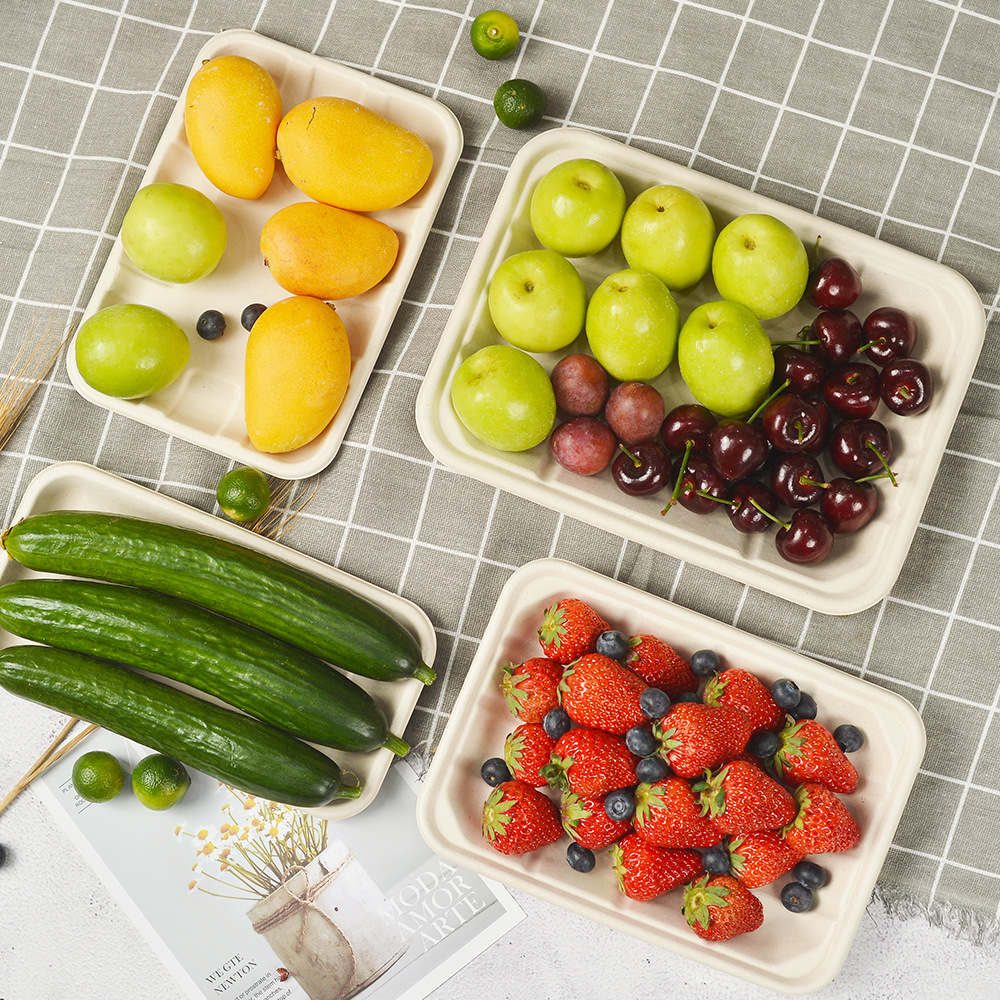 sugarcane pulp tray disposable paper tray vegetable meat tray degradable tableware fruit dinner plate picnic barbecue