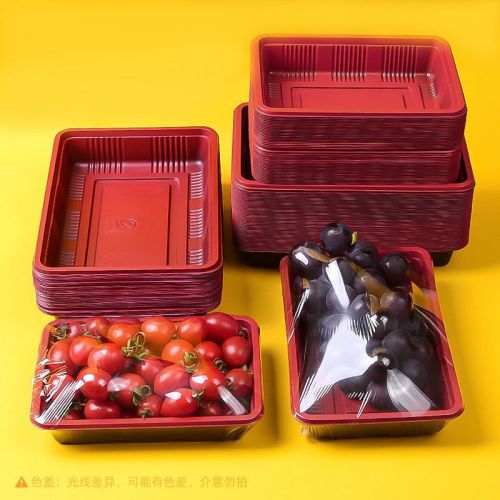 disposable red and black fruit tray fresh produce supermarket vegetable packaging box rectangular food thickened takeaway packing box