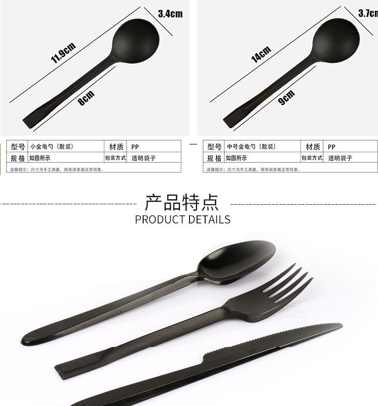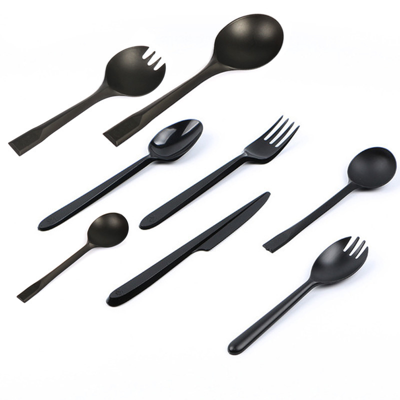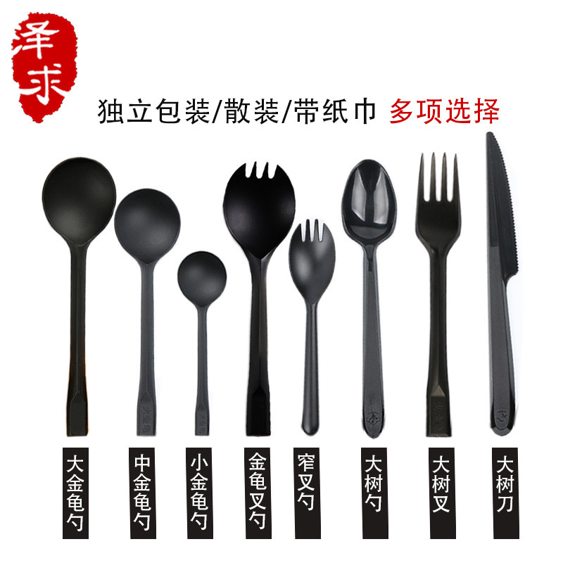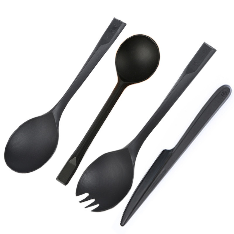 disposable thickened black knife, fork and spoon independent packaging plastic spoon kit fork spoon western food takeaway soup spoon fork