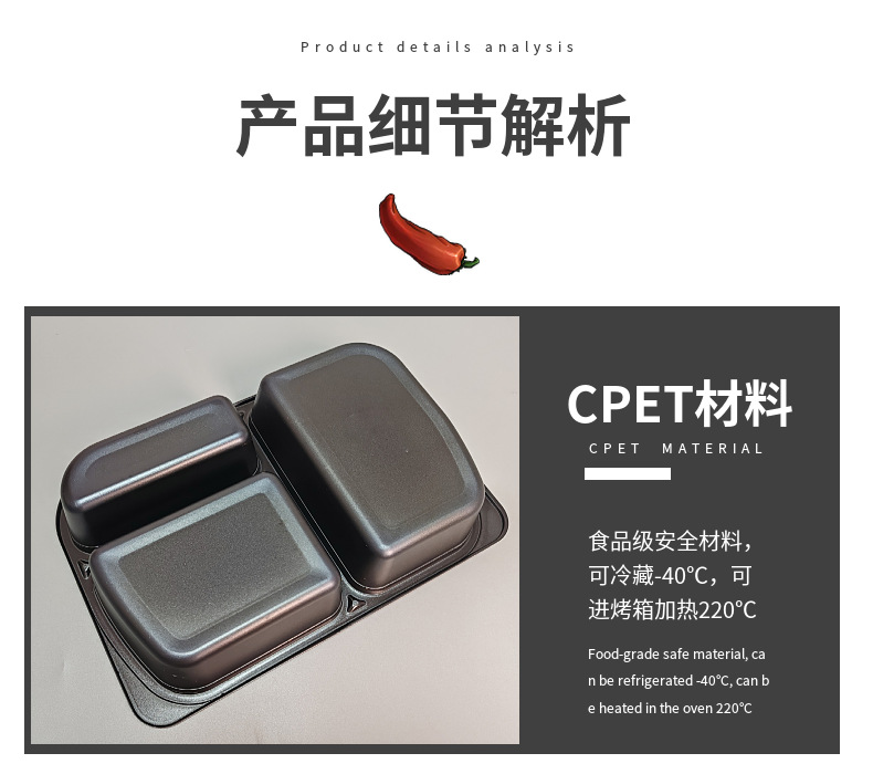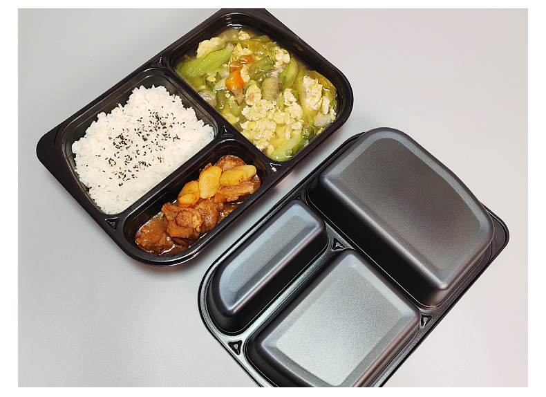 three-grid microwave large lunch box food grade cpet black rice instant heating convenient to-go box