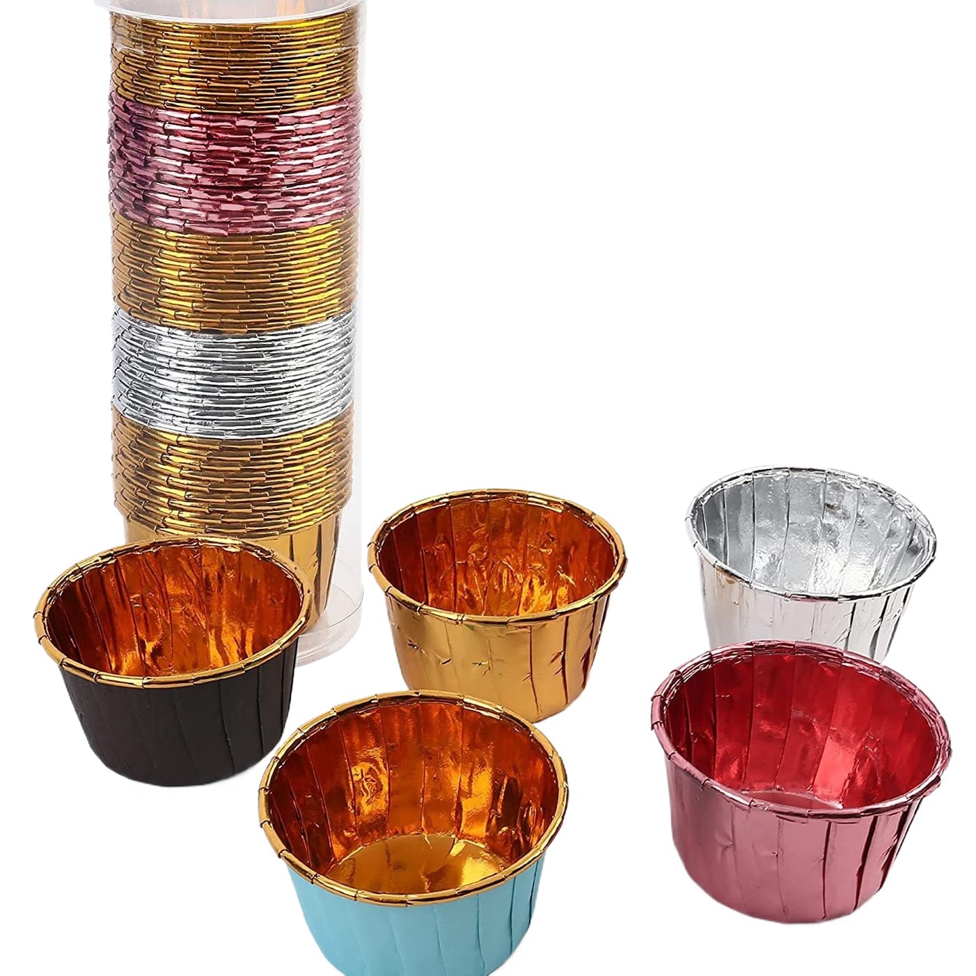 gold silver curved edge curling cake paper cups double-sided aluminum foil baking resistant high temperature thickened muffin cup paper cups qi feng