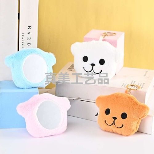 cotton-filled puppy plush embroidered single-sided pannier bag mirror metal keychain mirror cute style simple portable mirror h