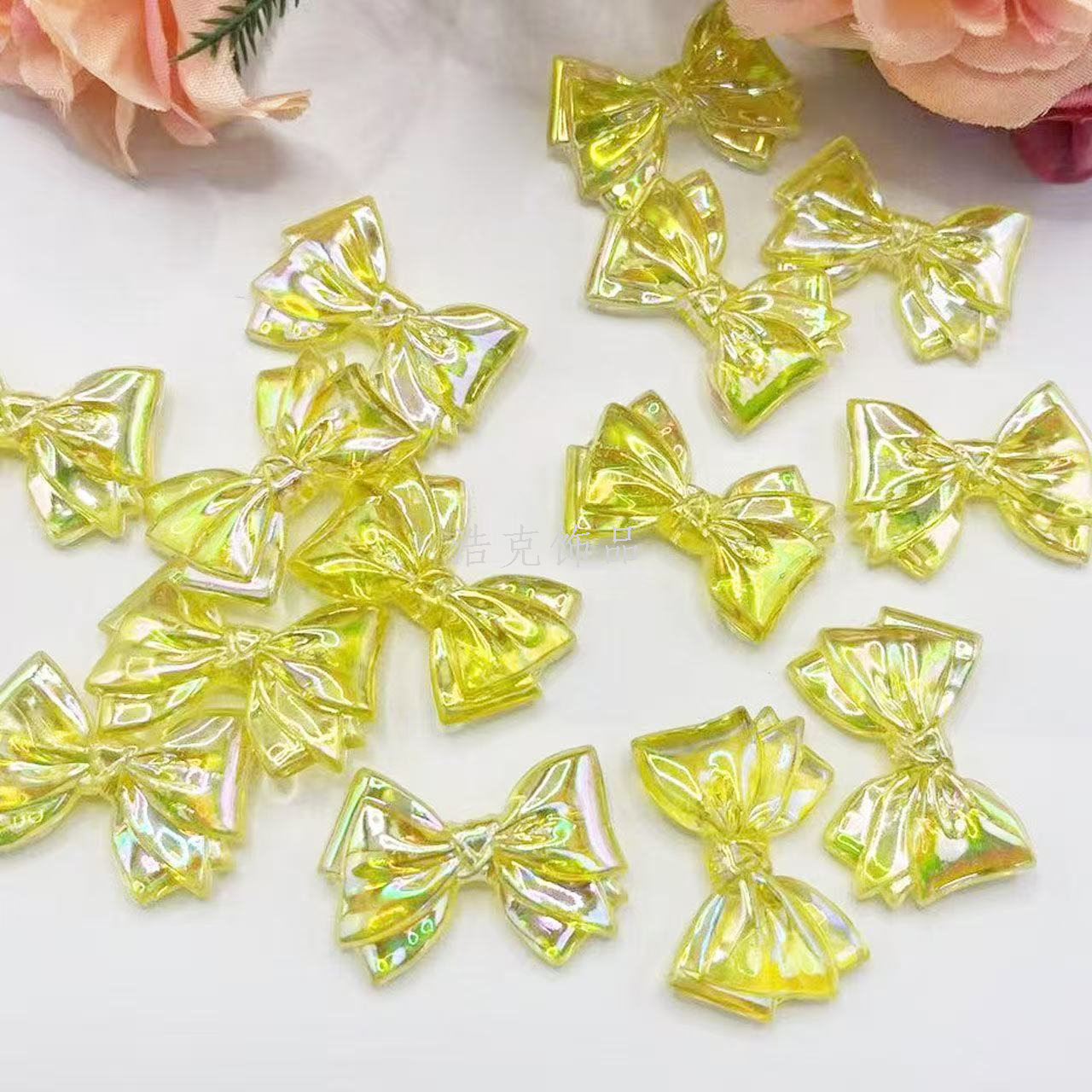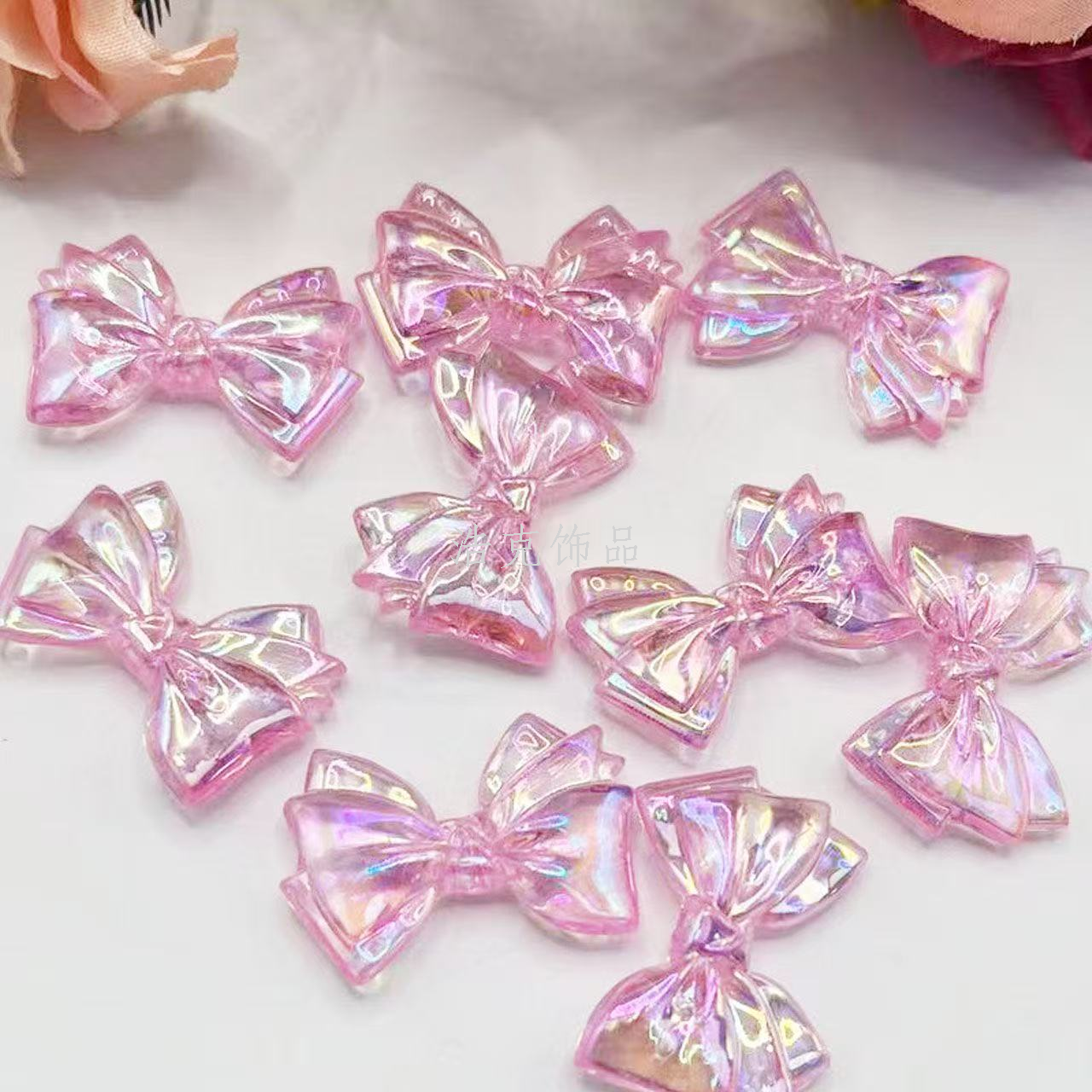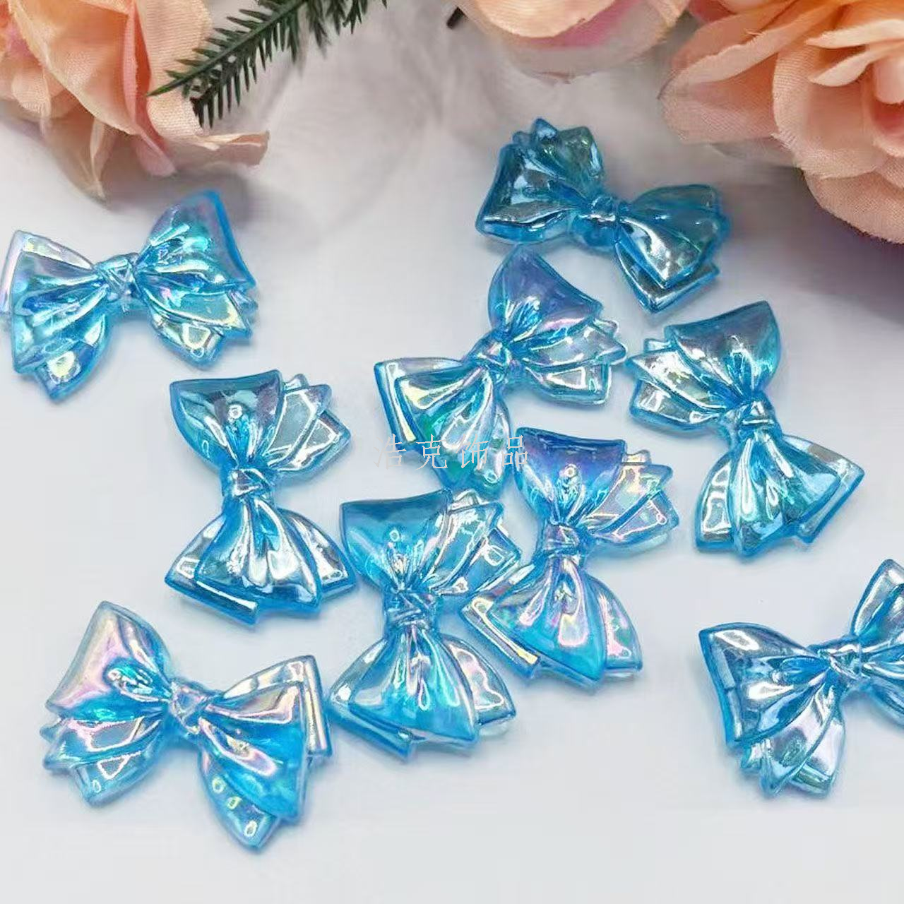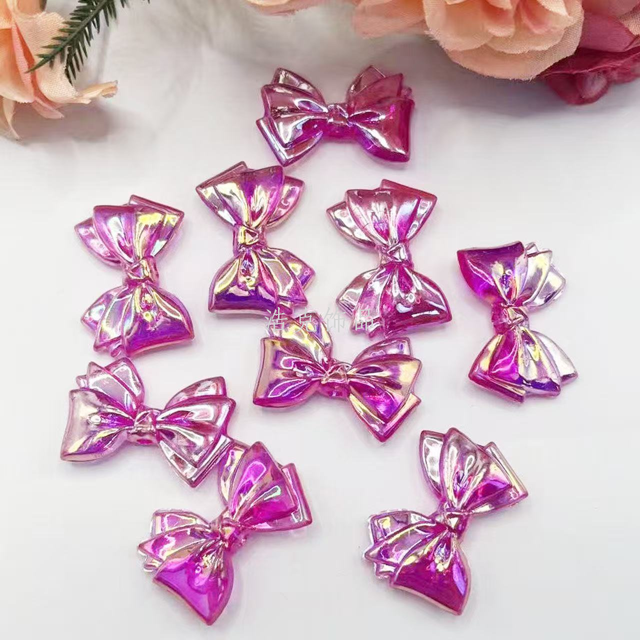 20x30mm bow ab color straight hole bow tie beaded bracelet/necklace keychain pendant. 中文版