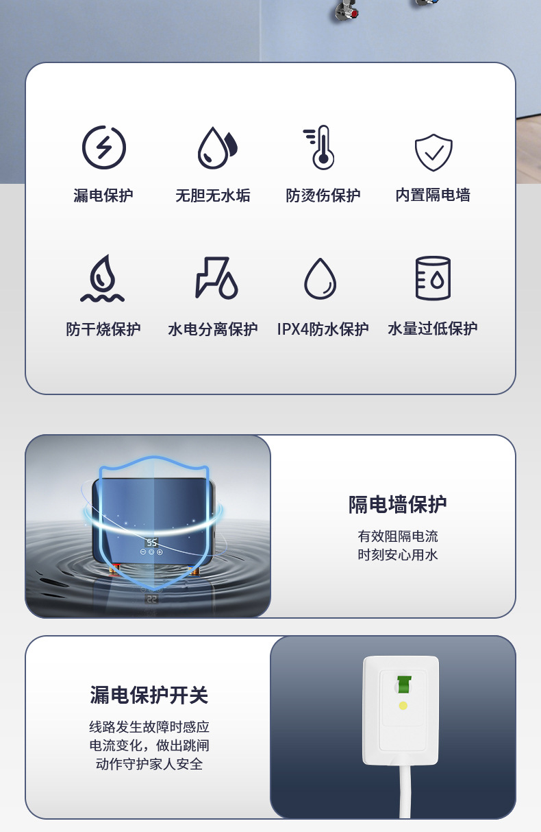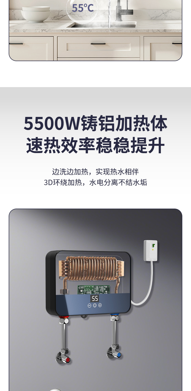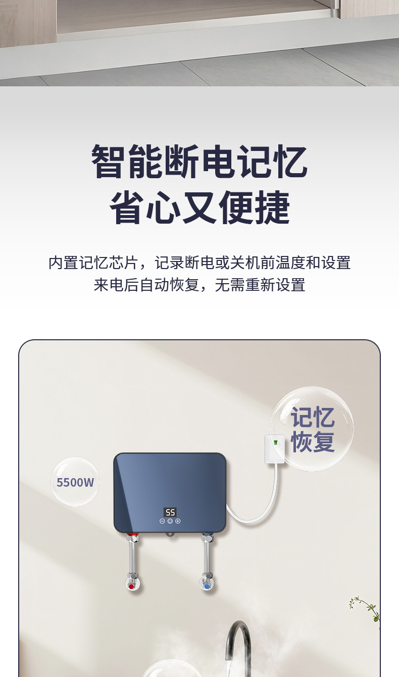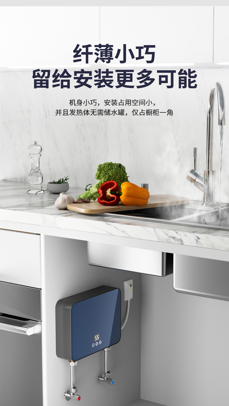 cross-border miniture water heater household rental kitchen and bathroom frequency conversion constant temperature three seconds fast heat free water storage instant electric water heater 中文版