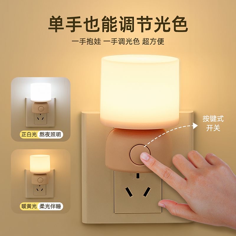 plug-in energy-saving eye protection with sleeping sleep up night baby children nursing bedroom button bedside lamp 中文版
