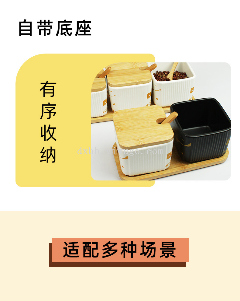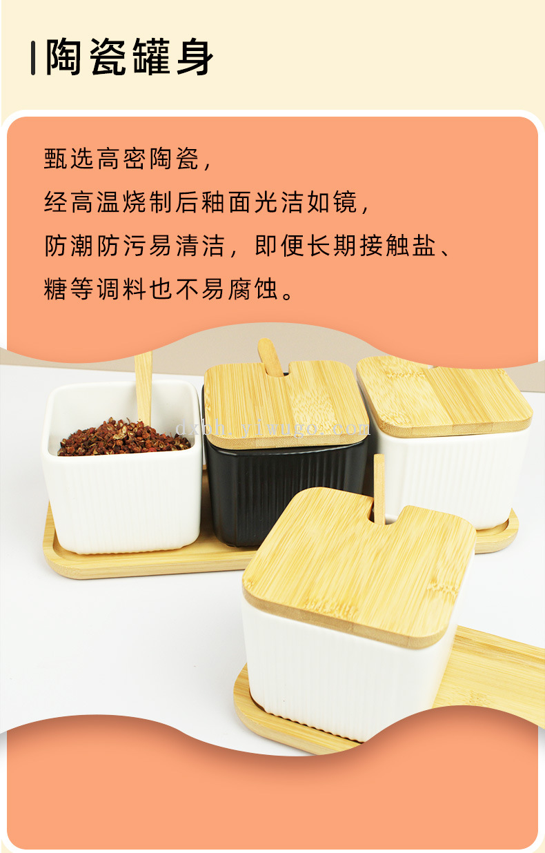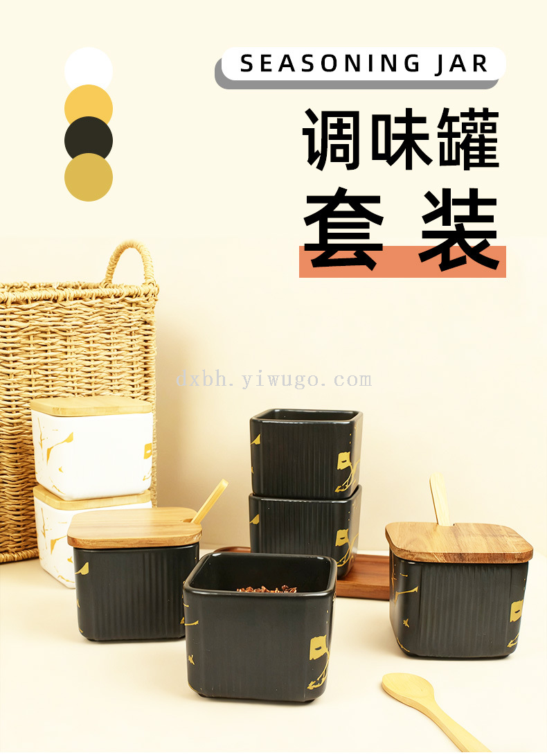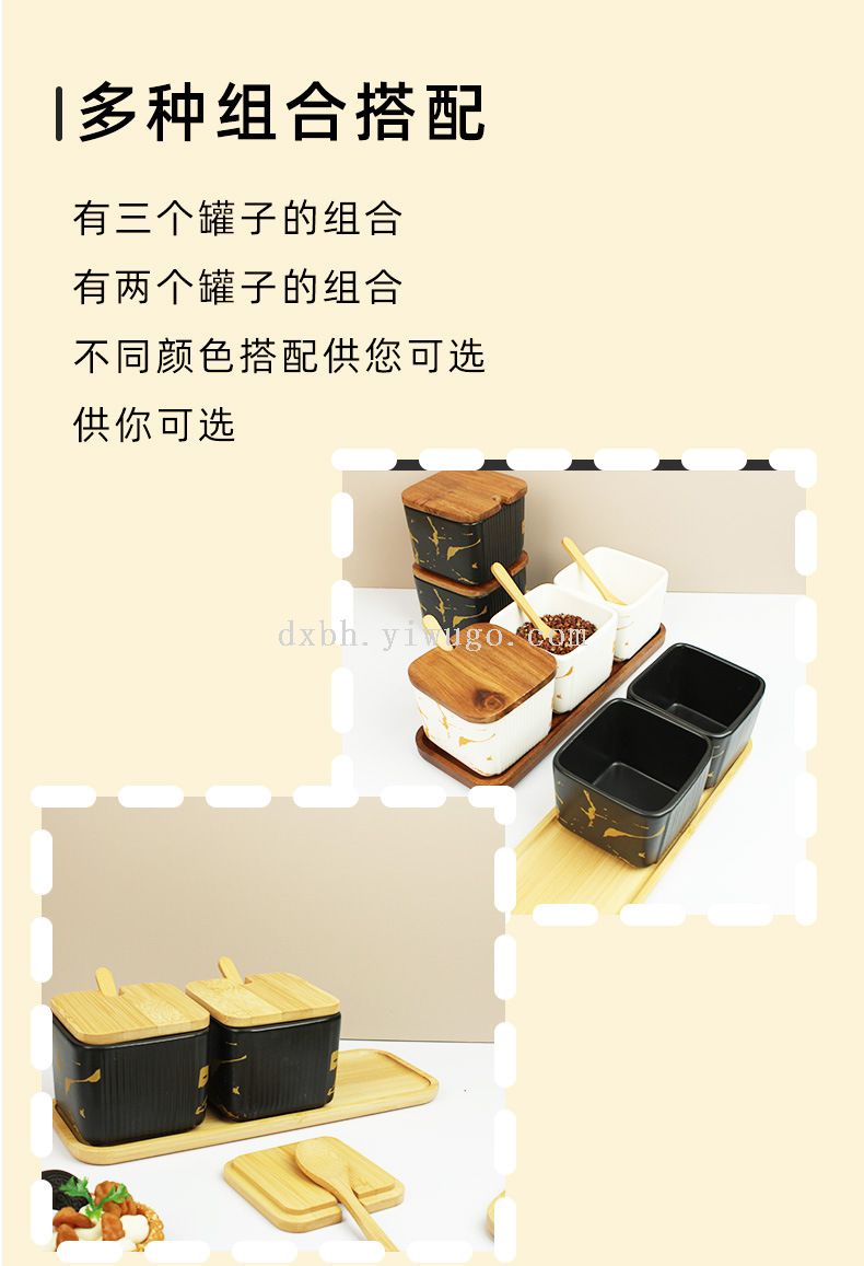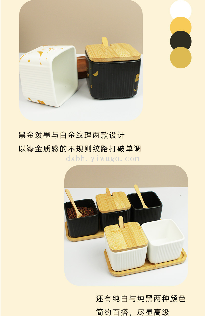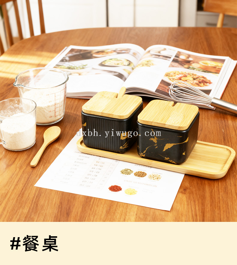 ceramic seasoning jar marbling seasoning box square salt shaker set kitchen seasoning box bamboo lid tray