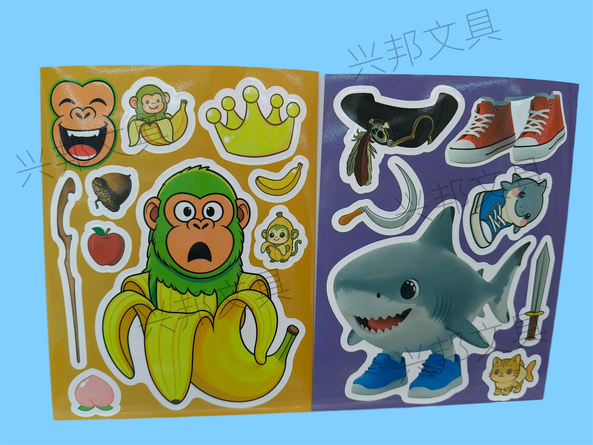 factory in stock shanhai sutra cartoon face changing stickers children's waterproof gift stickers hand account diy puzzle 8 sheets/bag 中文版