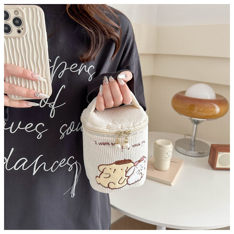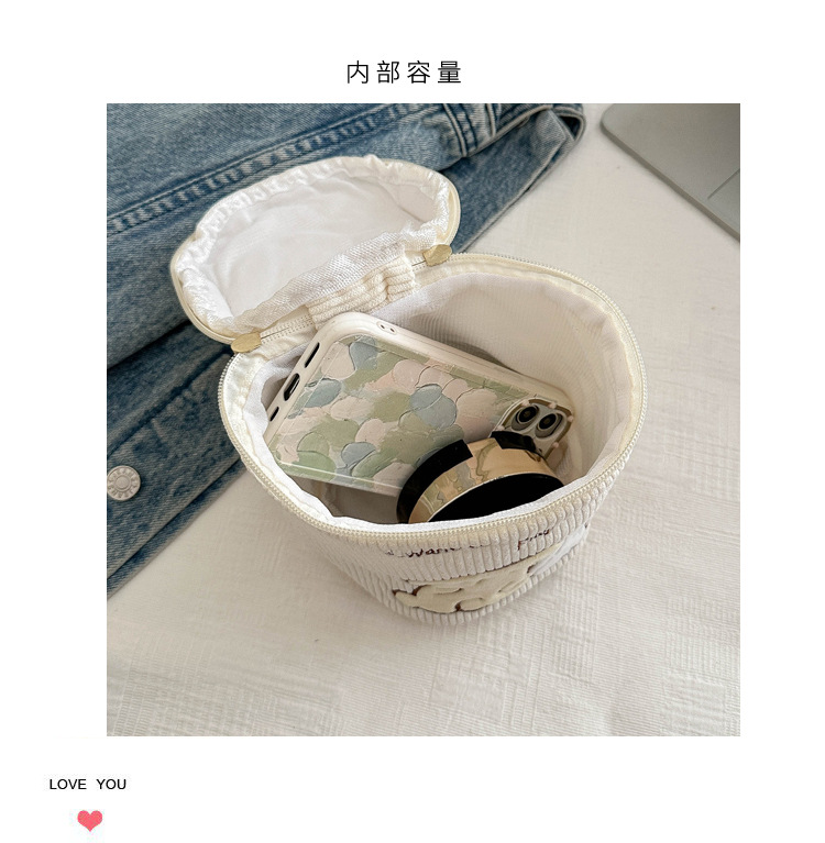 cute cartoon cosmetic bag portable canvas bag korean style girl heart round bag mummy bag lunch box bag bucket bag 中文版