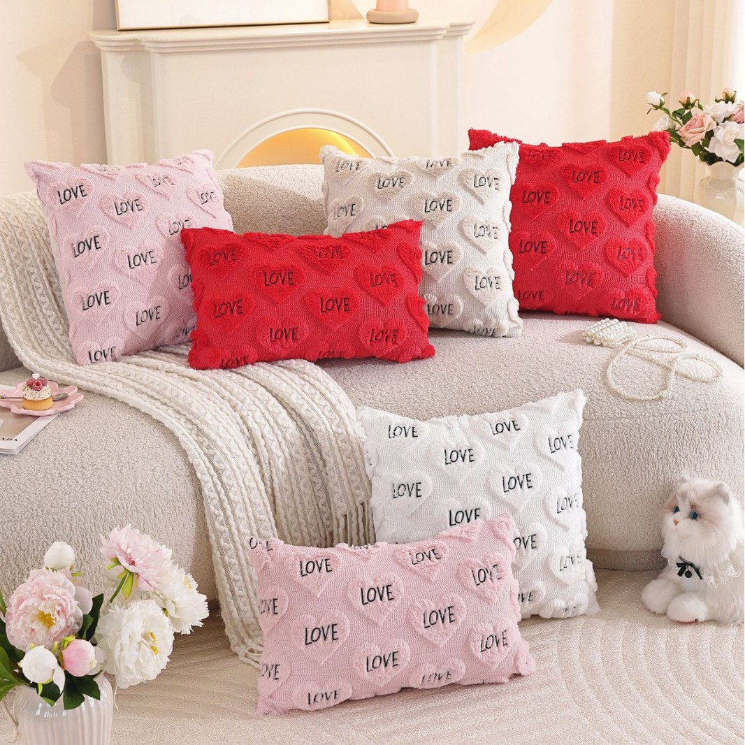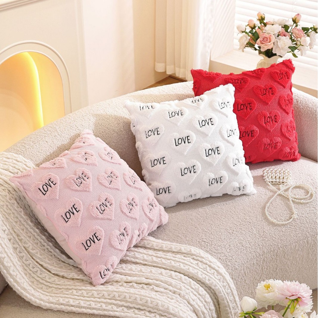 cross-border spot valentine's day love home pillow cover cute plush sofa living room cushions pillow cover 中文版